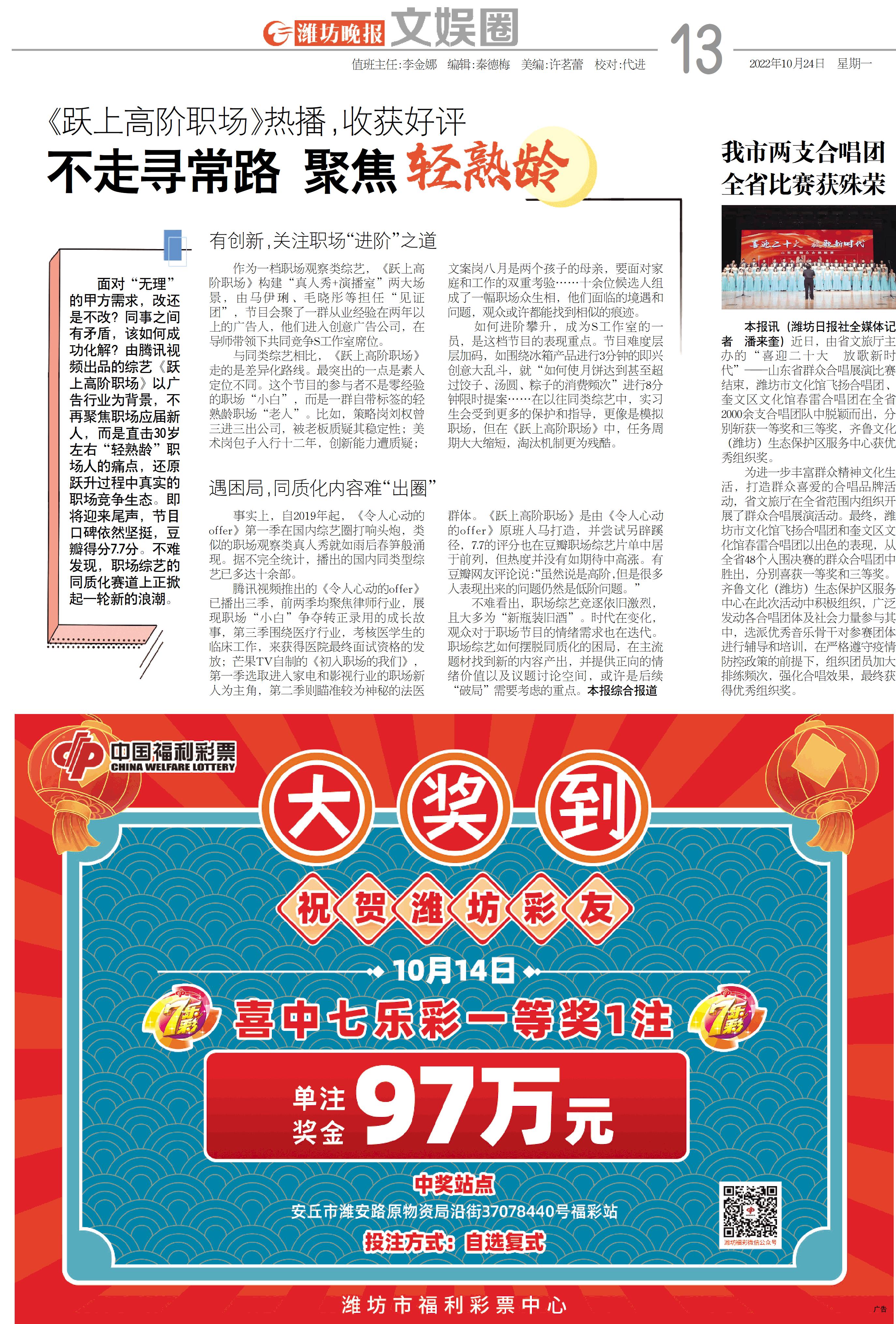 不难看出,职场综艺竞逐依旧激烈,且大多为“新瓶装旧酒”。时代在变化,观众对于职场节目的情绪需求也在迭代。职场综艺如何摆脱同质化的困局,在主流题材找到新的内容产出,并提供正向的情绪价值以及议题讨论空间,或许是后续“破局”需要考虑的重点。本报综合报道