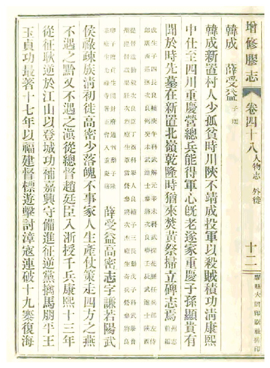 1913年薛兆瀛《薛氏族谱序》云:“八世祖受益以武略奋迹,康熙帝以其勤劳皇家厥有成绩,终钦赐谕祭葬,定职世袭游击,又钦命吾薛氏入灵山卫籍。”
