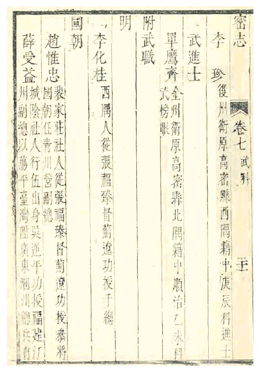 薛受益是否真能为诗,不得而知。从他喜好风雅之士来看,应是粗懂文墨。今天福建漳州东山岛关帝庙仍存有薛受益所题“山岛雾收舒正气,海门日出照精忠”的门联。薛受益后裔诗书传家,文武并茂。其长子薛士杰、四子薛瓀皆官至总兵,其次子薛琦是庠生,三子薛琏、五子薛璠都是太学生。薛家嫁娶皆为名族。其四子薛瓀,娶广东惠来知县查曾荣女。薛瓀长子薛隆绍娶四川梁万营都司童彪女。薛瓀次子薛隆纪,字得天,武庠生,娶宝庆知府王玮女。薛受益女六人,皆适士族,其中一女嫁高密同乡、礼部侍郎王飏昌之子王自巩。薛瓀有儒将之风,好诗文,其《诚州颂》云:“万仞当关楚国雄,双峰高耸入云中。诚州旧是干戈地,撑住东南半壁功。”乾隆间,薛璠曾为王飏昌《子言先生诗集》作序,他在序文中说:“璠生也晚,不获亲炙慈颜,扬瞻矩度,每以为憾。”