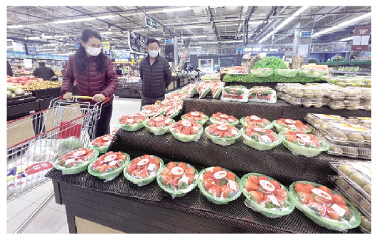 上午8时40分左右,记者又来到大润发奎文店看到,水果区显眼的位置摆放着不少成盒的草莓,一盒250克的四川双流草莓约有24颗,售价19.8元,有市民走到跟前看了看就离开了。“现在草莓价格还是有点贵,等便宜些再买吧。”在购买水果的市民李女士说。