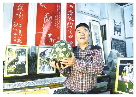 本报讯(潍坊日报社全媒体记者 郭超)11月20日,2022卡塔尔世界杯开幕,吸引了无数球迷的目光。在青州市王府街道,就有这样一位球迷,他收藏了一件酷似足球的奇石,陪伴着他见证了赛场上无数个巅峰时刻,他就是张强。