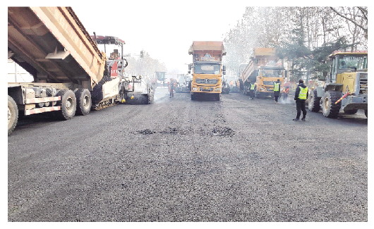 本报讯(潍坊日报社全媒体记者 赵春晖 通讯员 夏鹏)12月9日下午,潍城区北宫西街长松路至安顺路路段的南半幅路面上,大型沥青摊铺机正在紧张作业(如图)。这是该路段的最后一层沥青摊铺,也标志着这段道路的翻建施工即将完工。