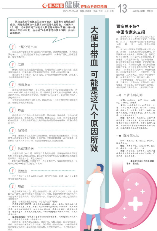 胃肠道疾病导致便血的原因有很多,甚至有可能是癌症的症状,因此出现便血一定要尽快到医院化验检查,对症治疗。2月15日,记者联系到了潍坊市人民医院普外科(胃肠外科)一区副主任医师许加友,他介绍了8个最常见的便血原因,并给出相关提醒。