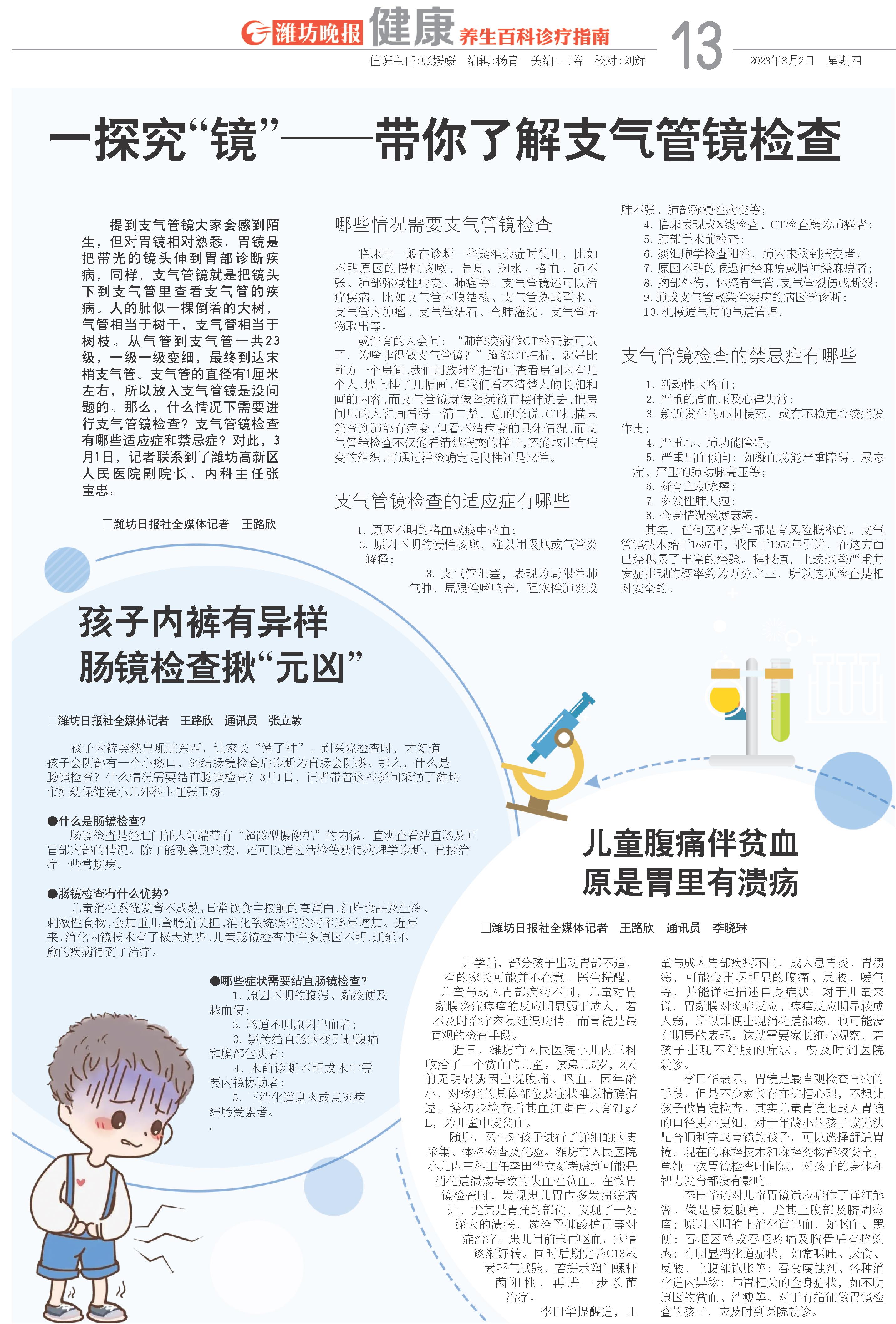 孩子内裤突然出现脏东西,让家长“慌了神”。到医院检查时,才知道孩子会阴部有一个小瘘口,经结肠镜检查后诊断为直肠会阴瘘。那么,什么是肠镜检查?什么情况需要结直肠镜检查?3月1日,记者带着这些疑问采访了潍坊市妇幼保健院小儿外科主任张玉海。