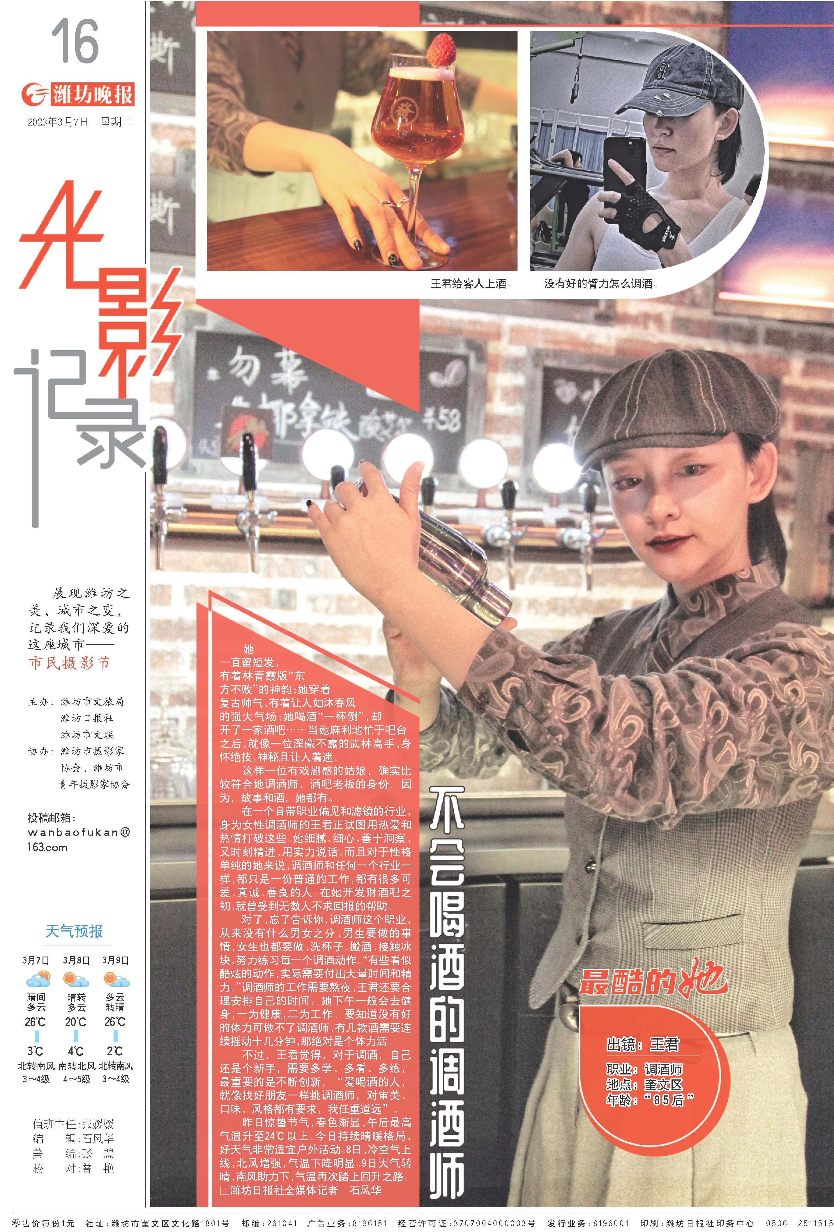 不过,王君觉得,对于调酒,自己还是个新手,需要多学、多看、多练,最重要的是不断创新,“爱喝酒的人,就像找好朋友一样挑调酒师,对审美、口味、风格都有要求,我任重道远”。