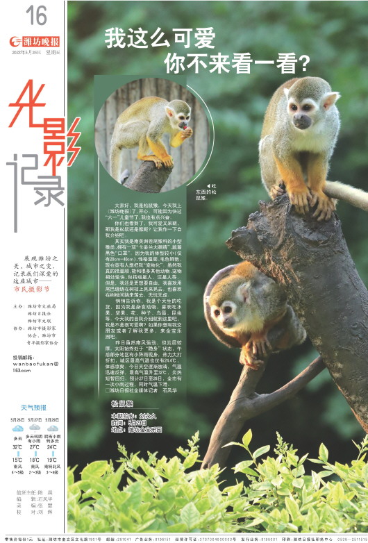 大家好,我是松鼠猴,今天我上《潍坊晚报》了,开心。可能因为快过“六一”儿童节了,我也有点兴奋。