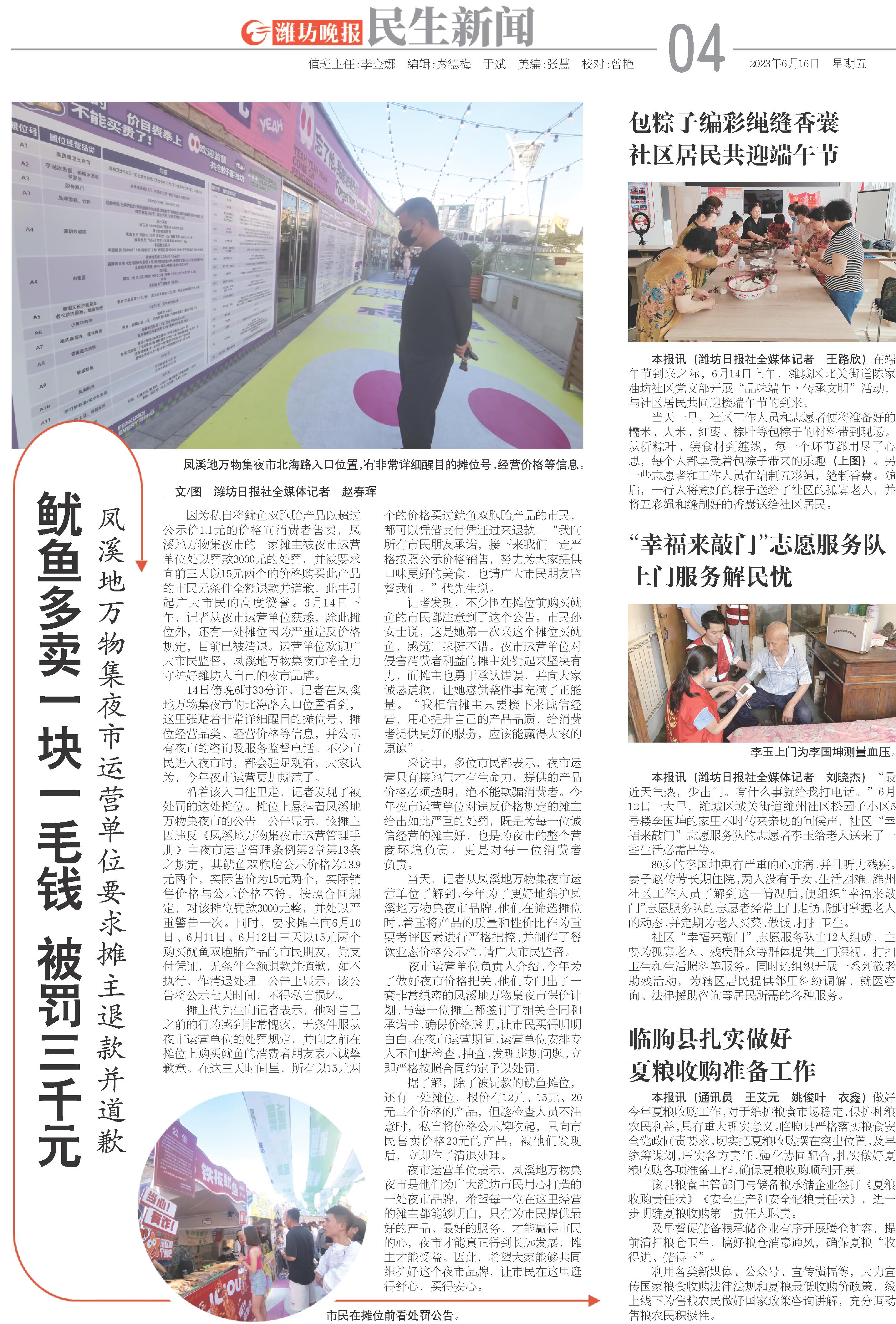 本报讯(通讯员 王艾元 姚俊叶 衣鑫)做好今年夏粮收购工作,对于维护粮食市场稳定、保护种粮农民利益,具有重大现实意义。临朐县严格落实粮食安全党政同责要求,切实把夏粮收购摆在突出位置,及早统筹谋划,压实各方责任,强化协同配合,扎实做好夏粮收购各项准备工作,确保夏粮收购顺利开展。