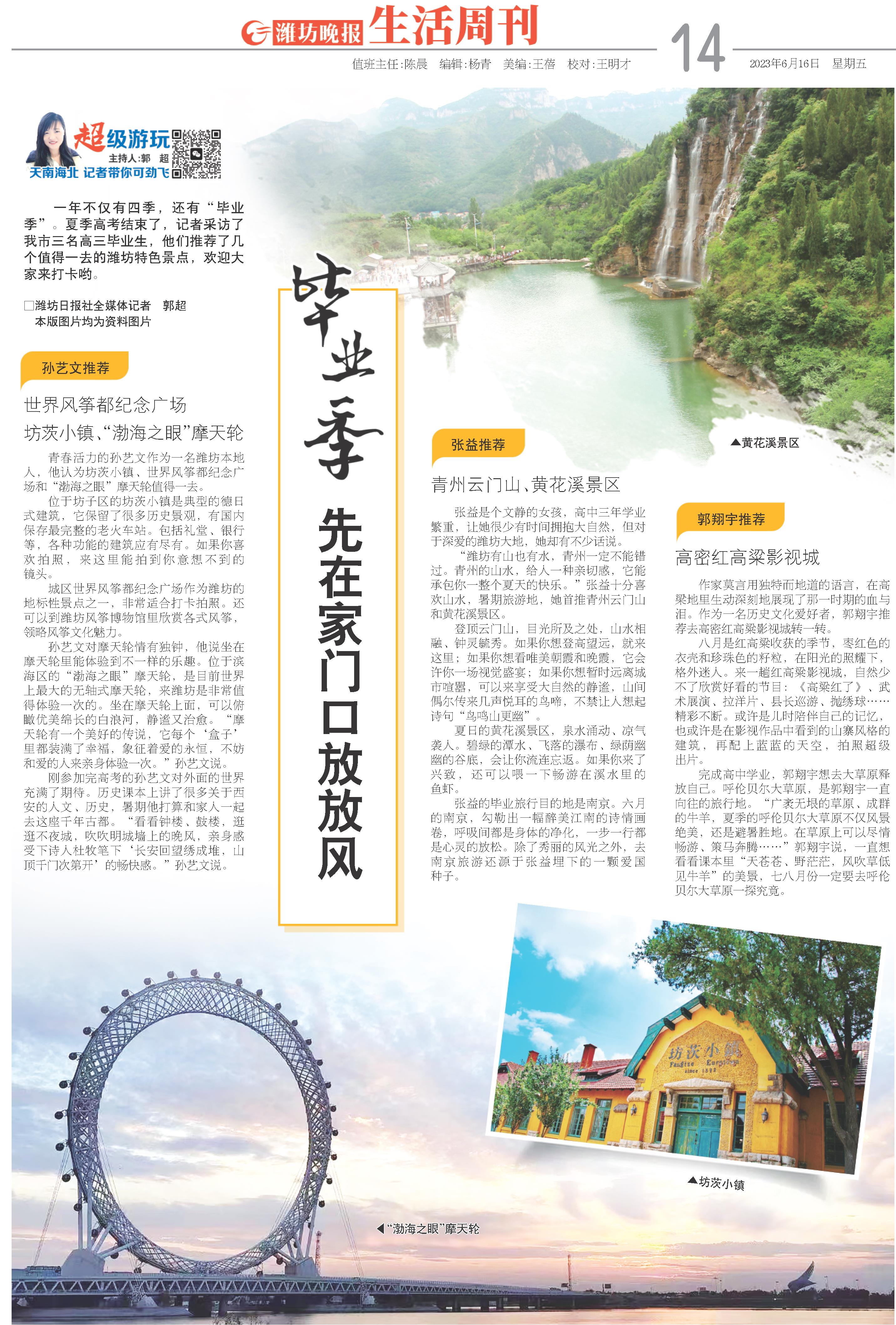 一年不仅有四季,还有“毕业季”。夏季高考结束了,记者采访了我市三名高三毕业生,他们推荐了几个值得一去的潍坊特色景点,欢迎大家来打卡哟。