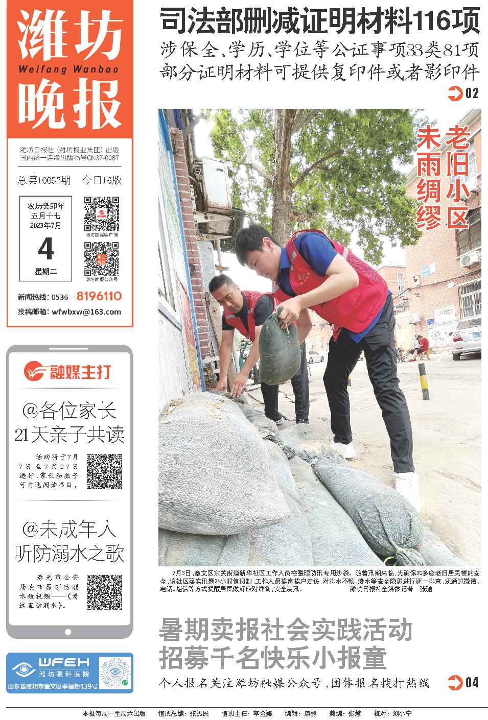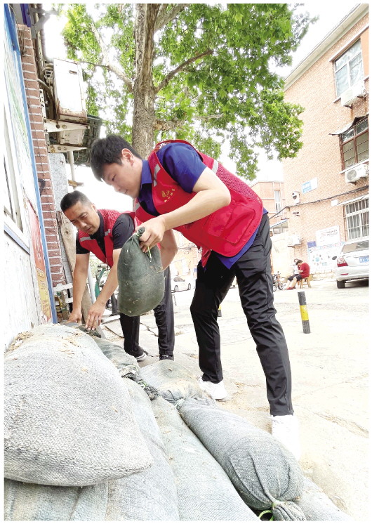 7月3日,奎文区东关街道新华社区工作人员在整理防汛专用沙袋。随着汛期来临,为确保30多座老旧居民楼的安全,该社区落实汛期24小时值班制,工作人员挨家挨户走访,对排水不畅、渗水等安全隐患进行逐一排查,还通过微信、电话、短信等方式提醒居民做好应对准备,安全度汛。 潍坊日报社全媒体记者 张驰