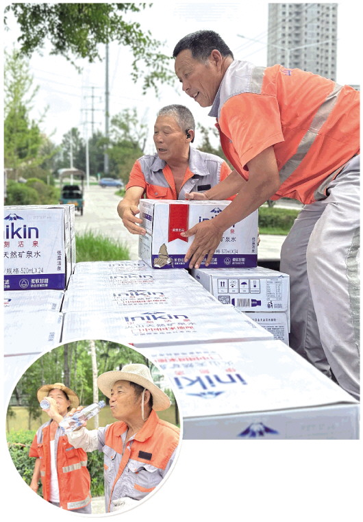 7月13日,在城区东风东街与北海路交叉口,志愿者将一箱箱饮用水送到了环卫工人的手中。当日,高新区新城街道社会工作服务站、潍坊市领航社会工作事务所开展“我为环卫工人送瓶水”志愿服务活动,将爱心人士捐赠的1400多瓶饮用水分发给在街头的一线环卫工人,向坚守在高温下的他们送去清凉和爱心。 潍坊日报社全媒体记者 张驰