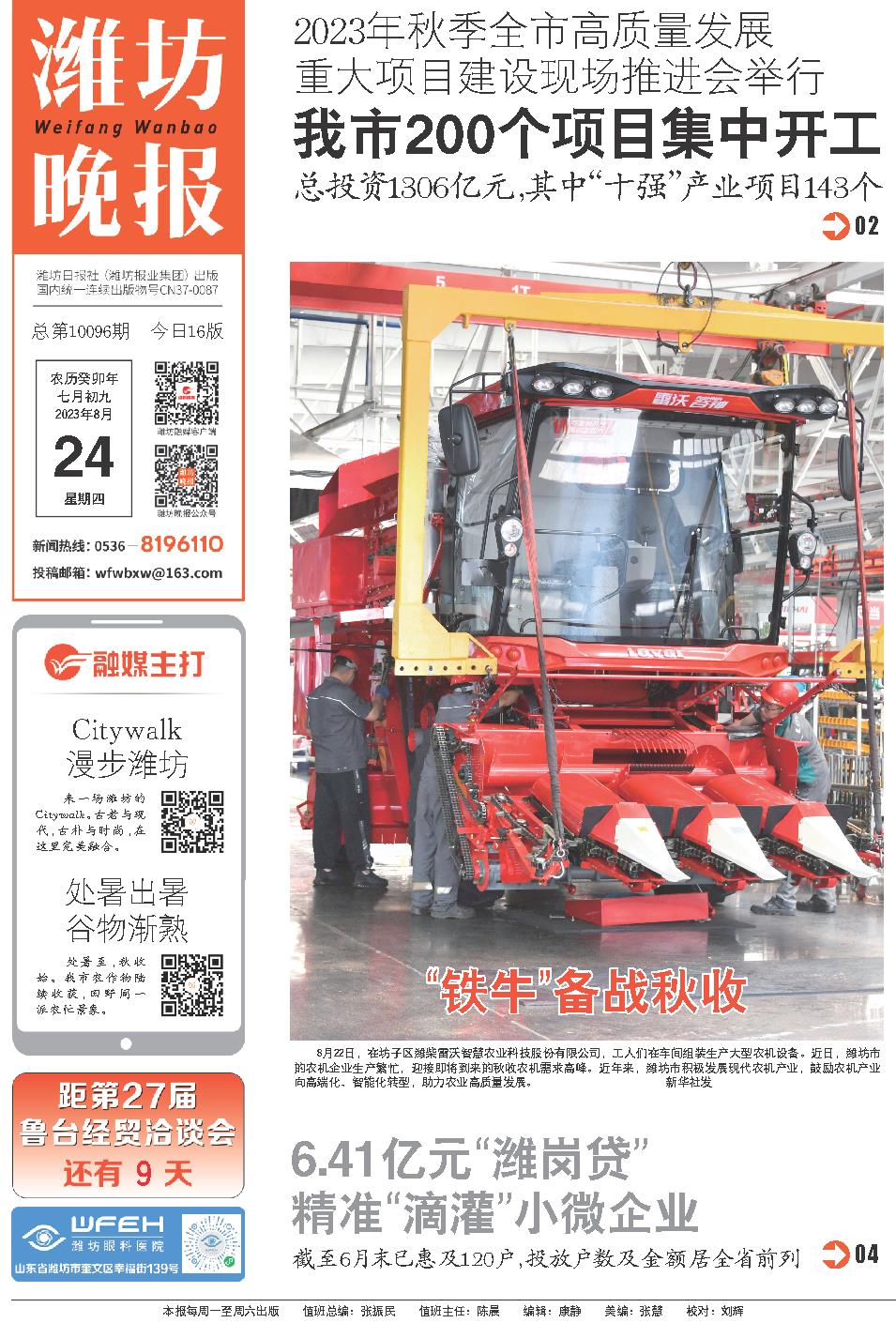 8月22日,在坊子区潍柴雷沃智慧农业科技股份有限公司,工人们在车间组装生产大型农机设备。近日,潍坊市的农机企业生产繁忙,迎接即将到来的秋收农机需求高峰。近年来,潍坊市积极发展现代农机产业,鼓励农机产业向高端化、智能化转型,助力农业高质量发展。 新华社发