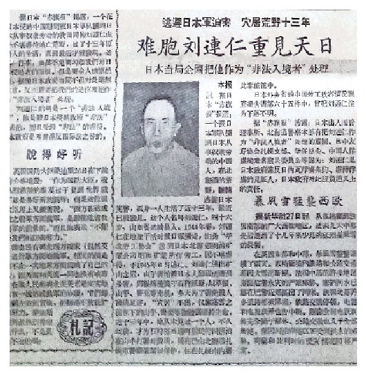 2月28日,《人民日报》发表了刘连仁被强掳至日本过了14年非人生活的消息,“刘连仁”一度成了高密县最热的人名。刘连仁在柴沟的岳母邱氏从《人民日报》上知道刘连仁在日本还活着,把这条消息剪下来,托人写信寄给远在东北的闺女。老人对刘连仁的一位难友——朱公村单亦文说:“自从俺女婿叫日本鬼子抓了去,俺闺女每回回娘家,就哭个不停,14年了,眼泪都快哭干了。这回,俺女婿有了下落,她不知该恣成什么样呢!俺还到草泊找过刘连登,问明俺女婿在日本的地名,托人写了封信,叫俺女婿早日回家团圆。”