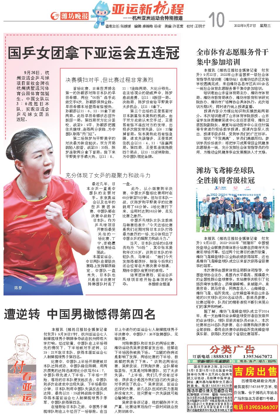 本报讯(潍坊日报社全媒体记者 付东升)9月23日,2022-2023年“熊猫杯”中国慢投垒球企业联赛济南体彩分站赛在济南市天乐康足球场开幕。经过两个比赛日的激烈较量,潍坊飞鸢棒垒球队以全胜战绩获得冠军,这也是潍坊飞鸢棒垒球队成立以来首次获得省级赛事的冠军。