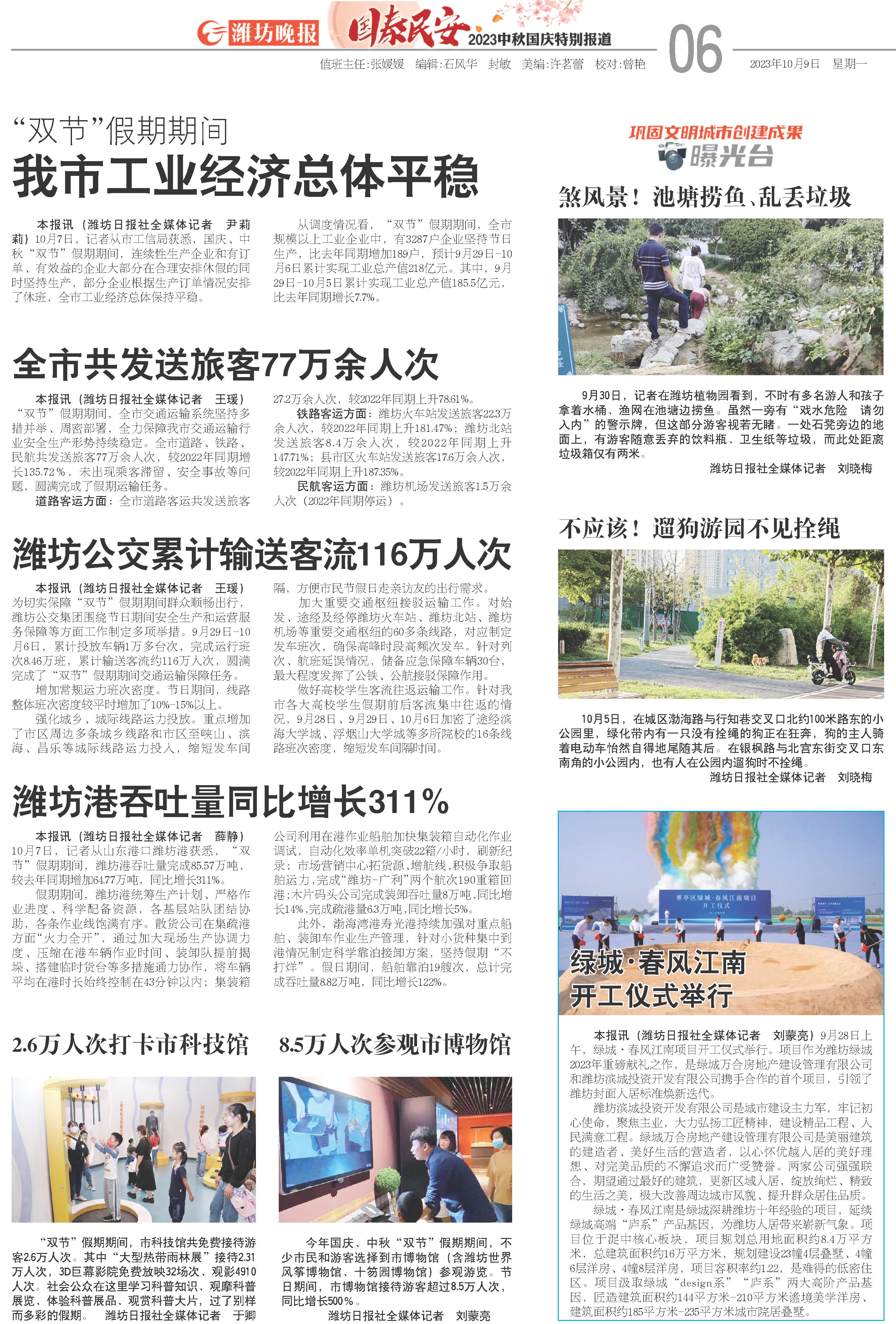 民航客运方面:潍坊机场发送旅客1.5万余人次(2022年同期停运)。