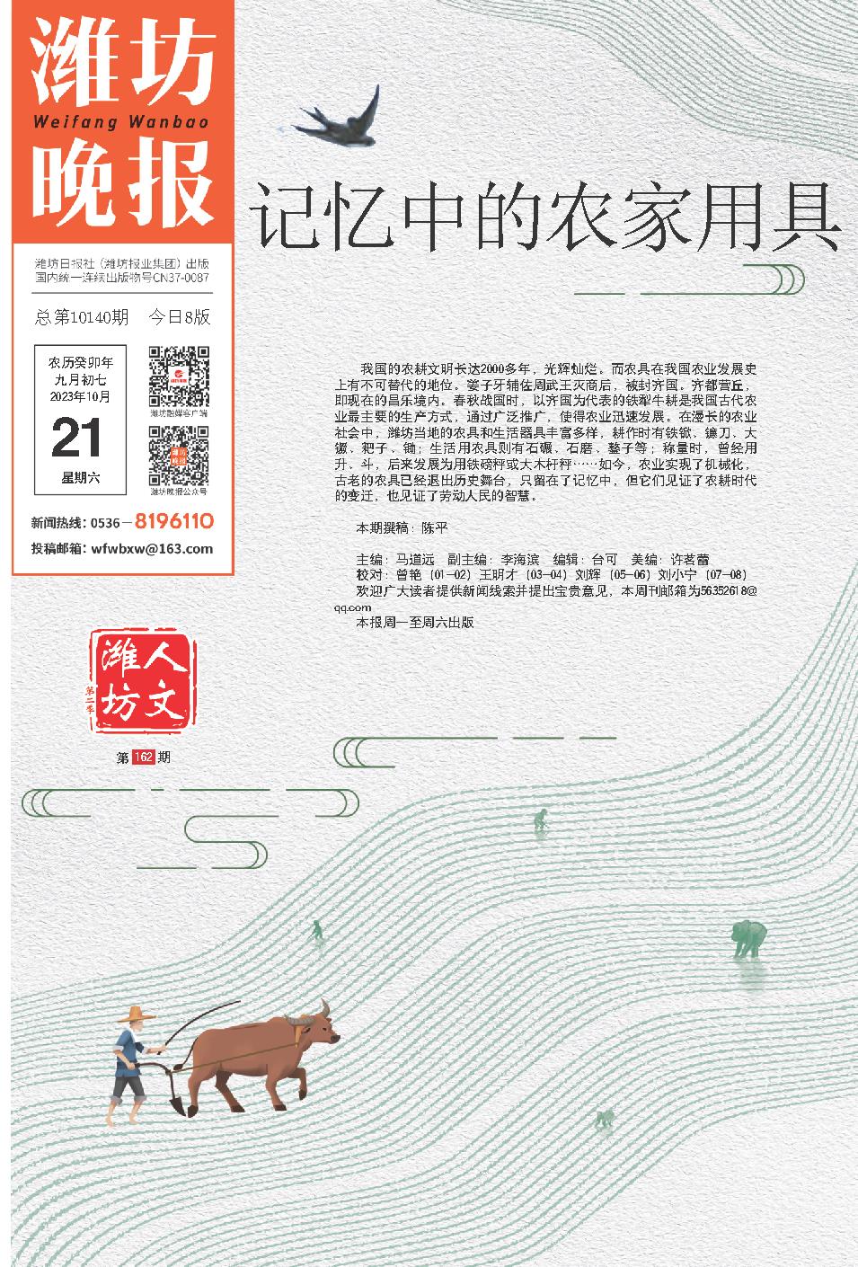 我国的农耕文明长达2000多年,光辉灿烂。而农具在我国农业发展史上有不可替代的地位。姜子牙辅佐周武王灭商后,被封齐国。齐都营丘,即现在的昌乐境内。春秋战国时,以齐国为代表的铁犁牛耕是我国古代农业最主要的生产方式,通过广泛推广,使得农业迅速发展。在漫长的农业社会中,潍坊当地的农具和生活器具丰富多样,耕作时有铁锨、镰刀、大镢、耙子、锄;生活用农具则有石碾、石磨、鏊子等;称量时,曾经用升、斗,后来发展为用铁磅秤或大木杆秤……如今,农业实现了机械化,古老的农具已经退出历史舞台,只留在了记忆中,但它们见证了农耕时代的变迁,也见证了劳动人民的智慧。