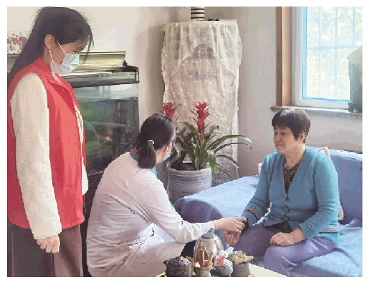街道各社区建立“红色代办”便民服务机制,将需要照顾的独居、空巢老人纳入重点走访对象,成立由网格员、楼道长等组成的“红色代办员”队伍,常态化开展老年人帮扶工作,提供上门理发、送餐到家、打水跑腿等暖心服务,确保老年群体“时时有人护、事事有人管”。“考虑到我们外出就医不便,社区每个月都安排为我们上门检查身体,非常暖心。”商城社区居民韩丽华说(上图)。