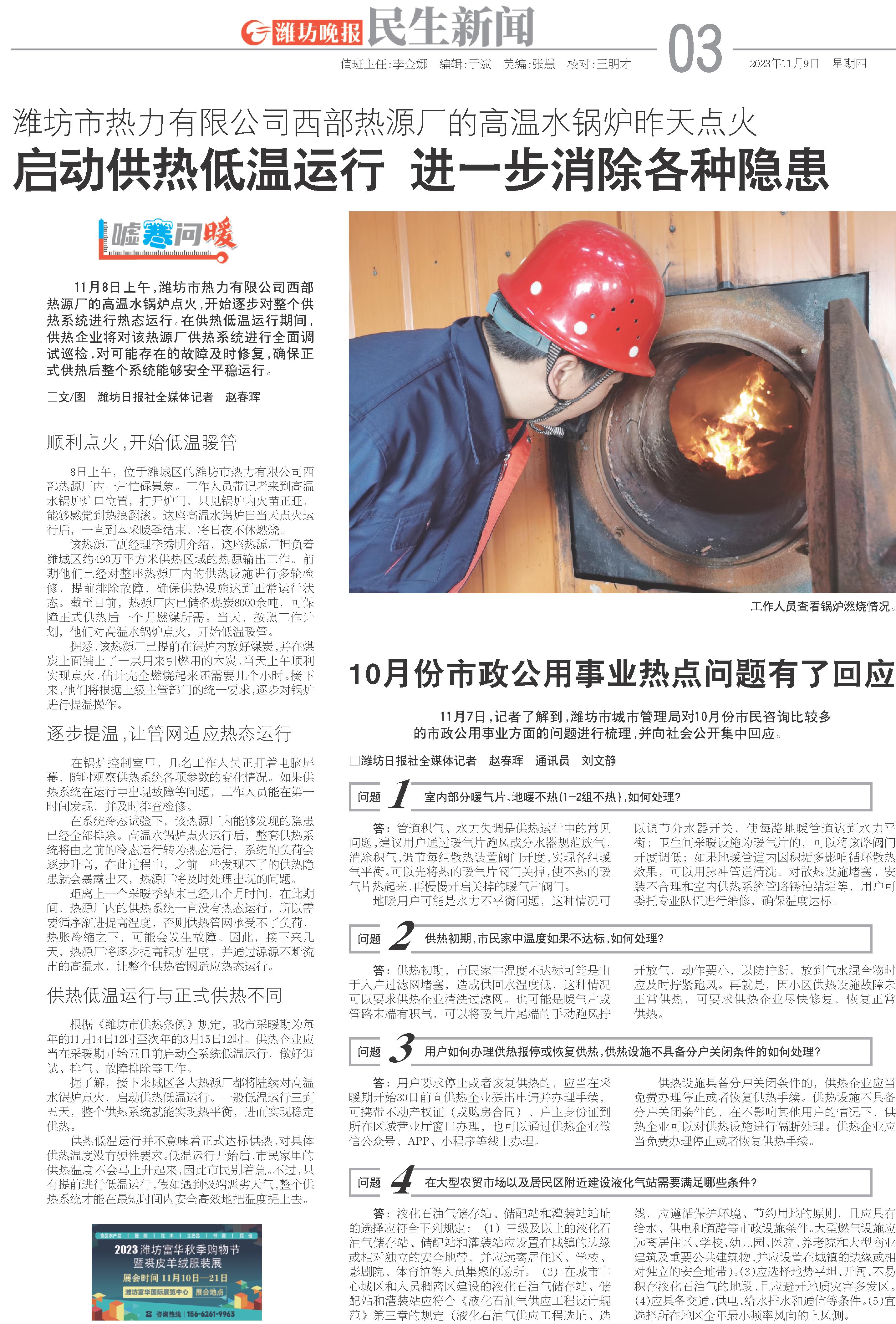 11月7日,记者了解到,潍坊市城市管理局对10月份市民咨询比较多的市政公用事业方面的问题进行梳理,并向社会公开集中回应。