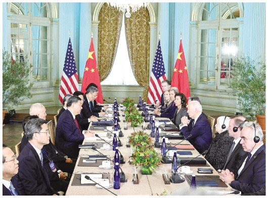 这次会晤积极、全面、富有建设性,为改善和发展中美关系指明了方向。旧金山应该成为稳定中美关系的新起点。两国元首责成双方团队在落实好巴厘岛会晤共识基础上,及时跟进和落实本次会晤达成的新愿景。两国元首同意继续保持经常性联系。