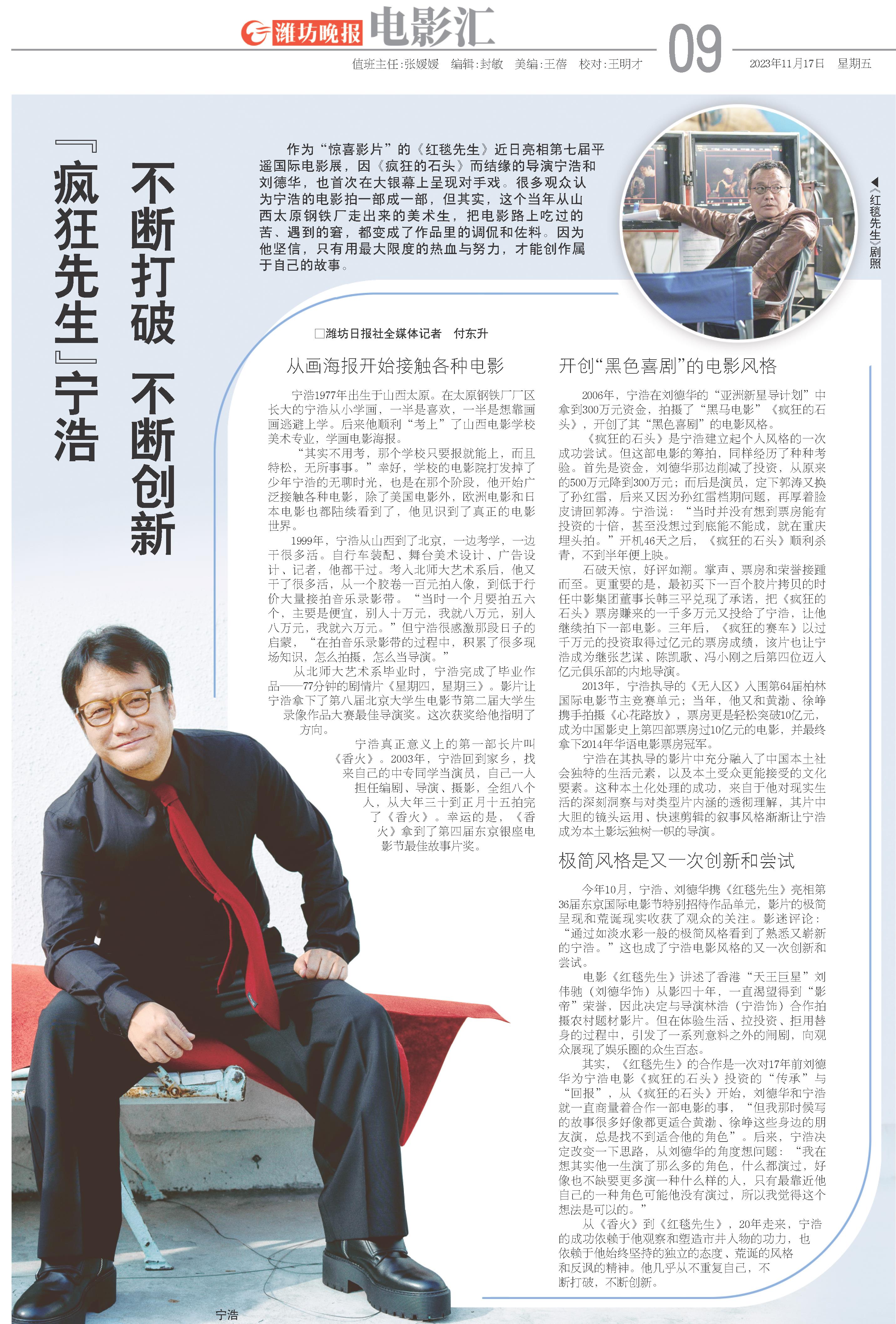 从《香火》到《红毯先生》,20年走来,宁浩的成功依赖于他观察和塑造市井人物的功力,也依赖于他始终坚持的独立的态度、荒诞的风格和反讽的精神。他几乎从不重复自己,不断打破,不断创新。