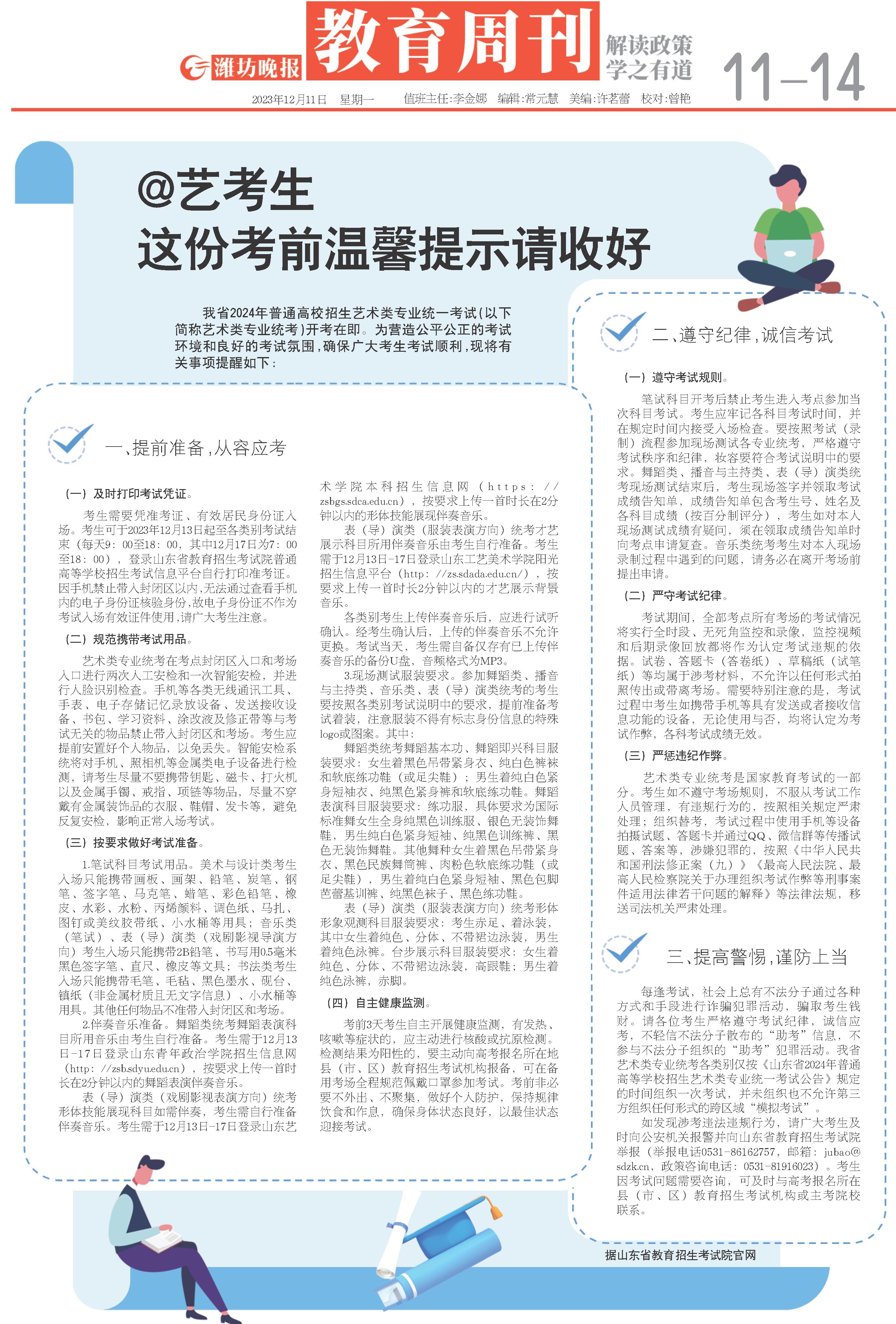每逢考试,社会上总有不法分子通过各种方式和手段进行诈骗犯罪活动,骗取考生钱财。请各位考生严格遵守考试纪律,诚信应考,不轻信不法分子散布的“助考”信息,不参与不法分子组织的“助考”犯罪活动。我省艺术类专业统考各类别仅按《山东省2024年普通高等学校招生艺术类专业统一考试公告》规定的时间组织一次考试,并未组织也不允许第三方组织任何形式的跨区域“模拟考试”。