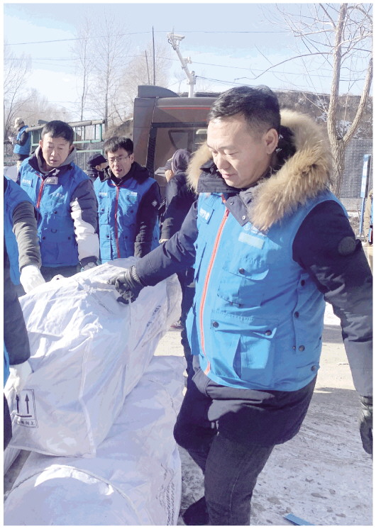 12月20日,在甘肃积石山县,潍坊志愿者孙志达(右一)正在搬运救灾物资。据了解,甘肃积石山6.2级地震发生后,潍坊市鸢都义工公益服务中心理事长、高新区志愿者协会会长孙志达于20日凌晨1时许到达积石山县,配合当地有关部门开展灾情和需求评估、物资发放等工作。 潍坊日报社全媒体记者 张驰(图片由受访者提供)