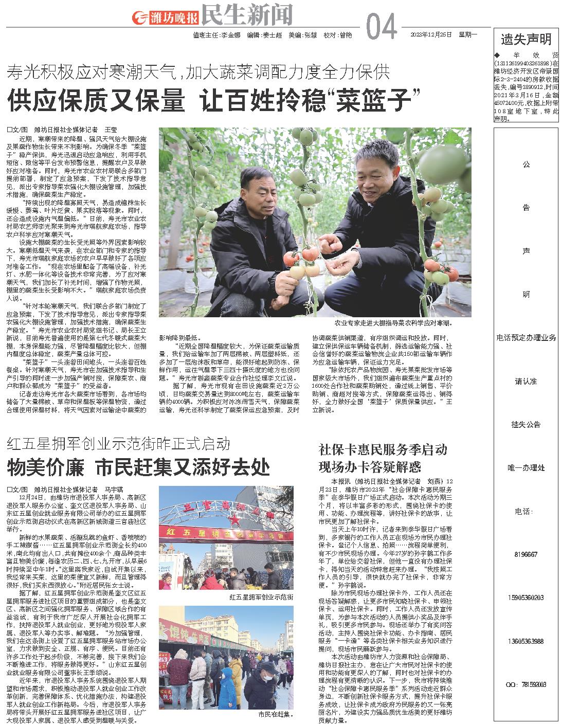 “菜篮子”一头连着田间地头,一头连着百姓餐桌。针对寒潮天气,寿光市在加强技术指导和生产引导的同时进一步加强产销对接,保障菜农、商户和群众都成为“菜篮子”的受益者。