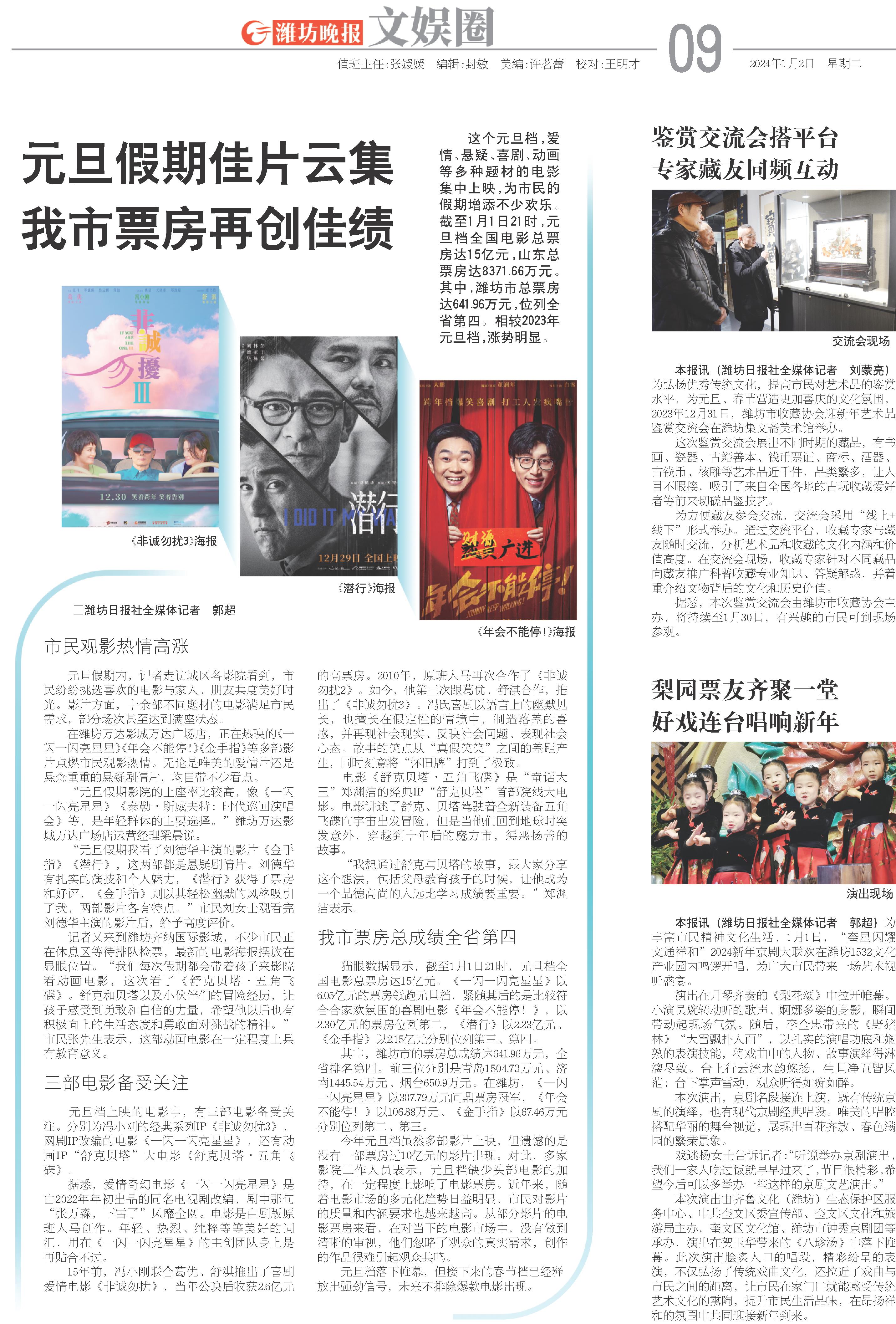 本报讯(潍坊日报社全媒体记者 刘蒙亮)为弘扬优秀传统文化,提高市民对艺术品的鉴赏水平,为元旦、春节营造更加喜庆的文化氛围,2023年12月31日,潍坊市收藏协会迎新年艺术品鉴赏交流会在潍坊集文斋美术馆举办。