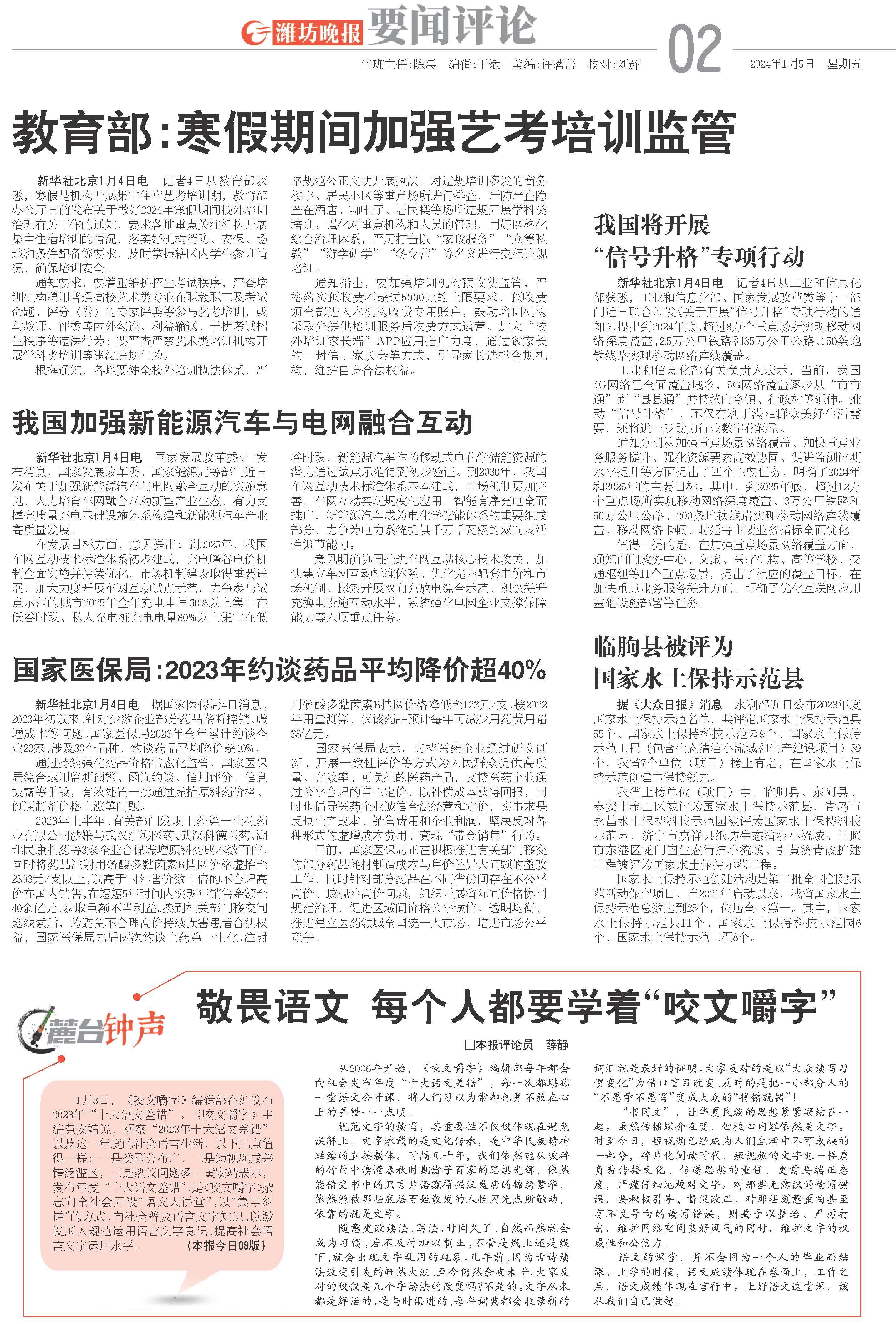 1月3日,《咬文嚼字》编辑部在沪发布2023年“十大语文差错”。《咬文嚼字》主编黄安靖说,观察“2023年十大语文差错”以及这一年度的社会语言生活,以下几点值得一提:一是类型分布广,二是短视频成差错泛滥区,三是热议问题多。黄安靖表示,发布年度“十大语文差错”,是《咬文嚼字》杂志向全社会开设“语文大讲堂”,以“集中纠错”的方式,向社会普及语言文字知识,以激发国人规范运用语言文字意识,提高社会语言文字运用水平。 (本报今日08版)