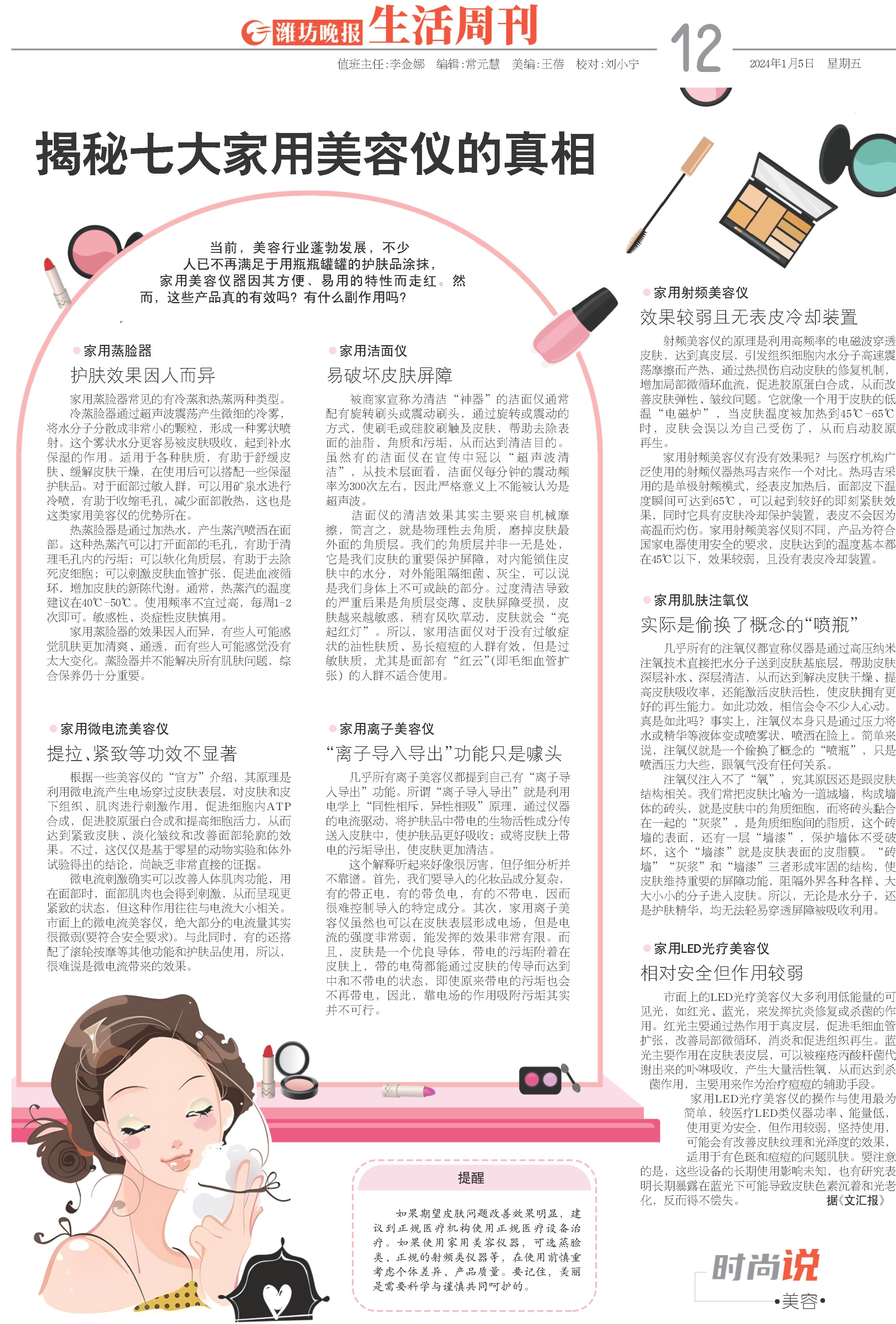 当前,美容行业蓬勃发展,不少人已不再满足于用瓶瓶罐罐的护肤品涂抹,家用美容仪器因其方便、易用的特性而走红。然而,这些产品真的有效吗?有什么副作用吗?
