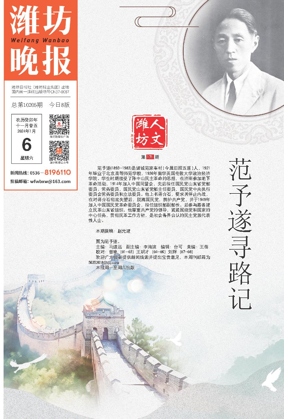 范予遂(1893-1983)是诸城范家车村(今属日照五莲)人,1921年毕业于北京高等师范学校,1936年留学英国伦敦大学政治经济学院。学生时期接受了孙中山民主革命的思想,在济南参加地下革命活动,1914年加入中国同盟会,先后担任国民党山东省党部委员、常务委员,国民党山东省党部主任委员,国民党中央执行委员会常务委员和立法委员。他上书蒋介石,要求其停止内战,在对蒋介石彻底失望后,脱离国民党,拥护共产党,并于1949年加入中国国民党革命委员会,担任组织部副部长。后参与筹备建立民革山东省组织。他尊重共产党的领导,紧紧围绕党和国家的中心任务,贯彻民革工作方针,是社会各界公认的民主党派代表性人士。