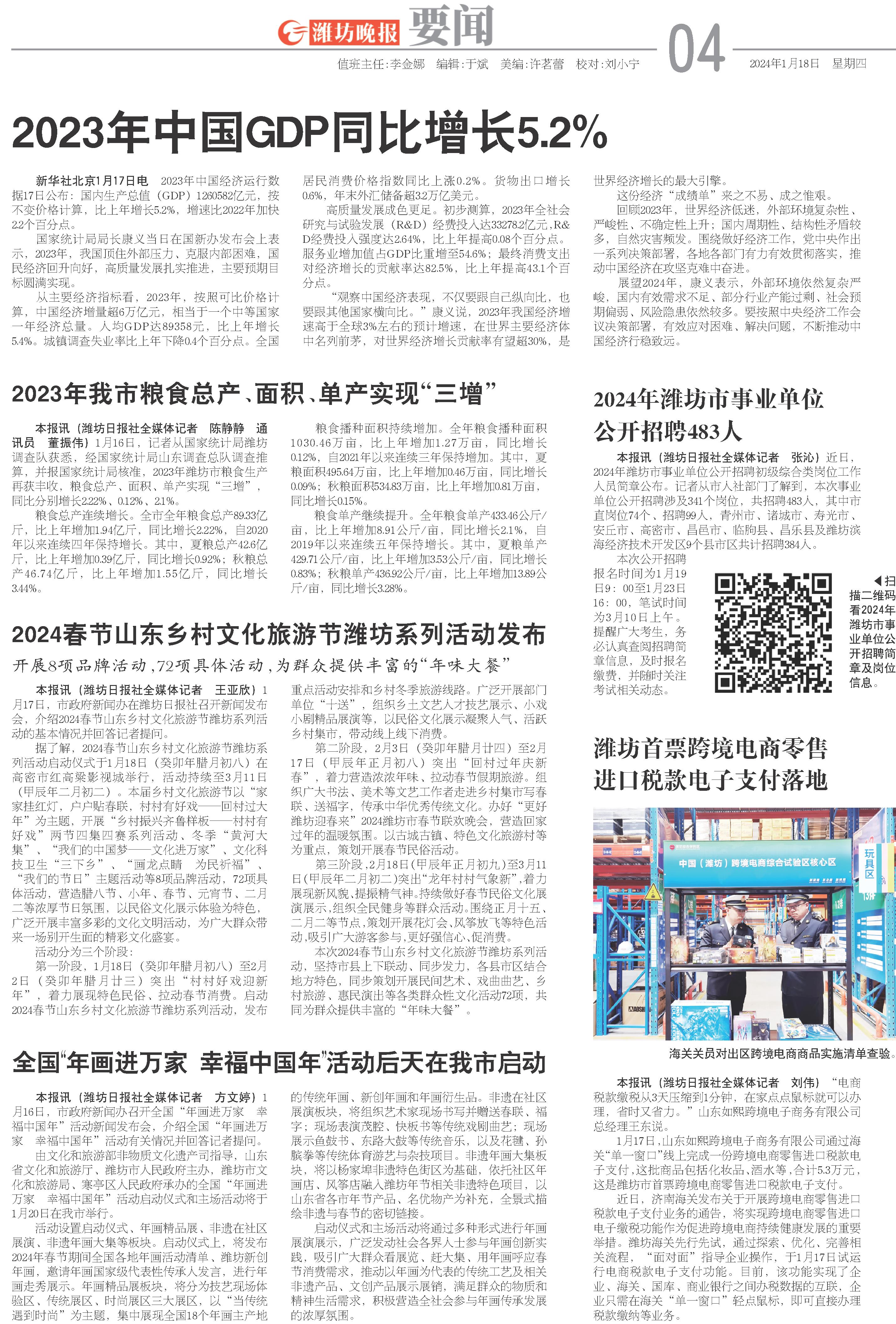 本报讯(潍坊日报社全媒体记者 方文婷)1月16日,市政府新闻办召开全国“年画进万家 幸福中国年”活动新闻发布会,介绍全国“年画进万家 幸福中国年”活动有关情况并回答记者提问。