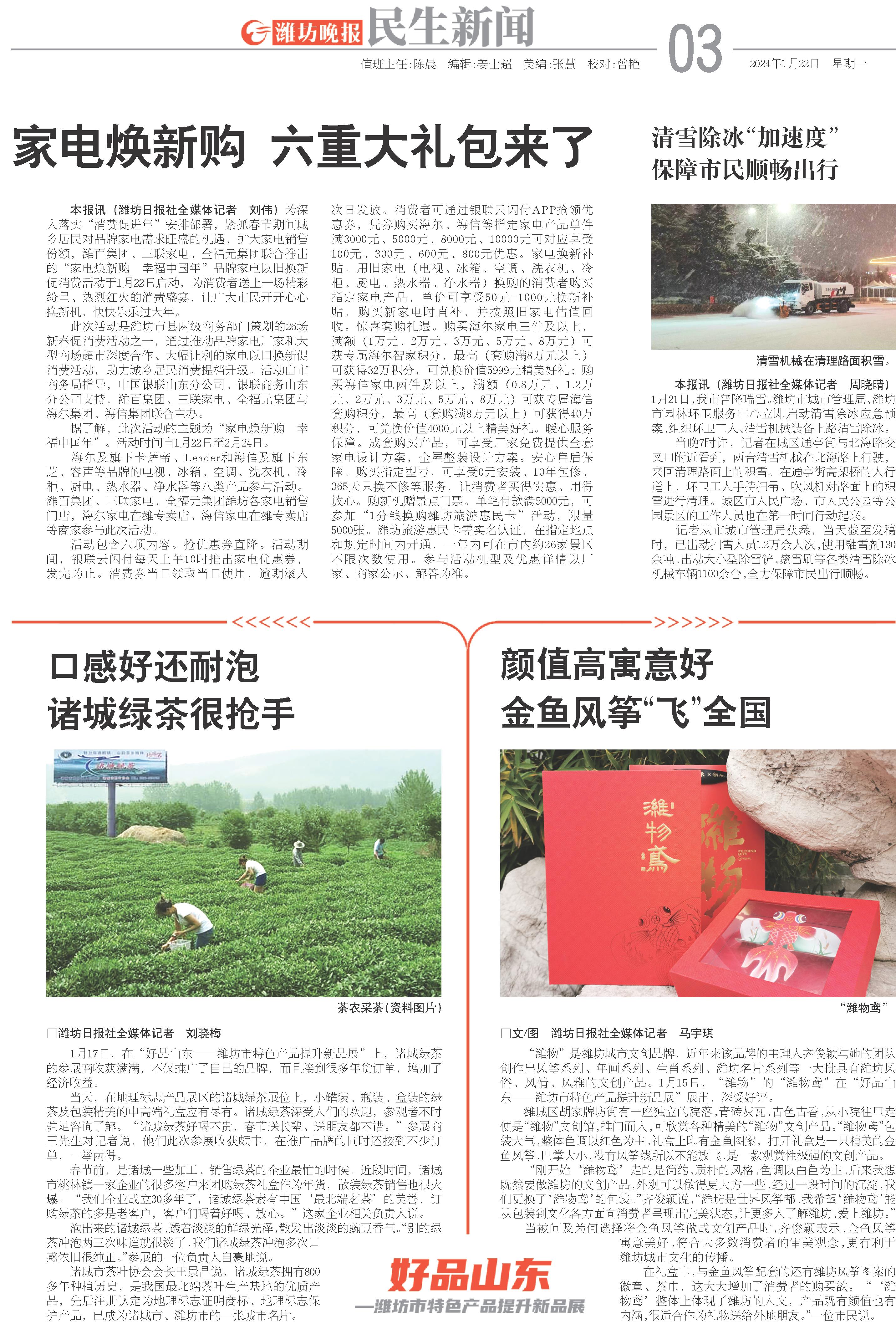 本报讯(潍坊日报社全媒体记者 刘伟)为深入落实“消费促进年”安排部署,紧抓春节期间城乡居民对品牌家电需求旺盛的机遇,扩大家电销售份额,潍百集团、三联家电、全福元集团联合推出的“家电焕新购 幸福中国年”品牌家电以旧换新促消费活动于1月22日启动,为消费者送上一场精彩纷呈、热烈红火的消费盛宴,让广大市民开开心心换新机,快快乐乐过大年。