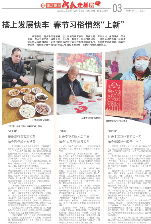 春节临近,青州各类迎新春、过大年活动丰富多彩,热闹欢腾。青州古城,主题灯会、民俗展演,传承千年文脉;城镇乡村,赶大集、备年货,延续传统习俗……这些活动的内容,既有传统习俗又有新的时尚,让青州处处涌动红红火火过新年的喜庆氛围。尤其值得关注的是,随着社会发展,当地部分春节期间的传统习俗出现了新变化,在新时代展现出新风采。