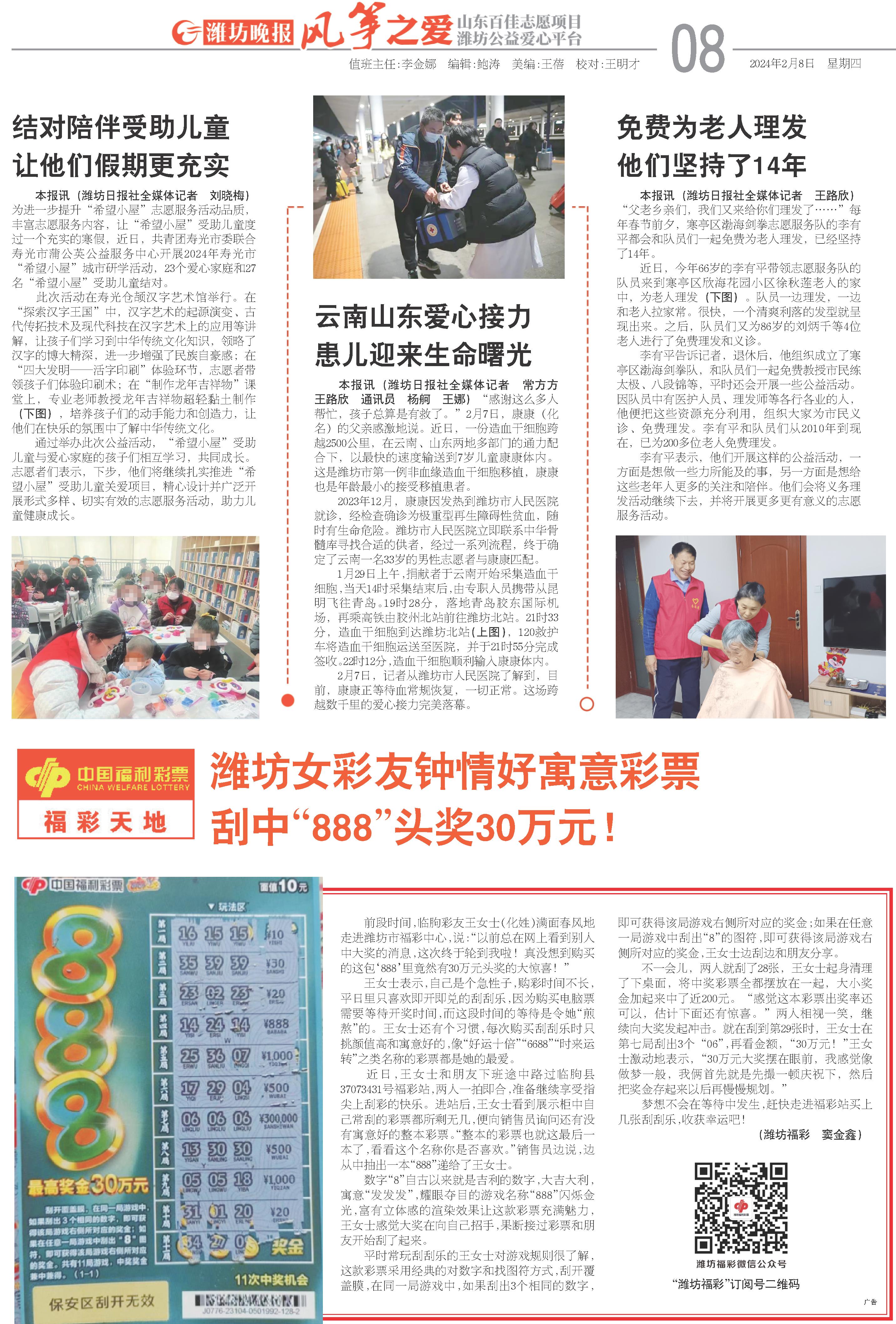 2月7日,记者从潍坊市人民医院了解到,目前,康康正等待血常规恢复,一切正常。这场跨越数千里的爱心接力完美落幕。