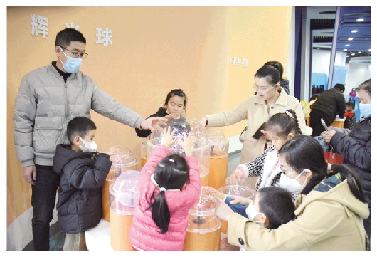 记者走进科技馆,映入眼帘的是红红的对联、灯笼、“福”字等,营造着浓浓的年味,共贺美好的龙年。馆内将现代科技元素与传统民俗元素有机融合,轮番上演“花式科普”,包括中华传统文化科普体验、航天主题讲解、宇宙探秘、生命运动、能源环保、海洋生物、光磁电声奥秘等,让市民游客近距离学习科学知识、探索科学奥秘。