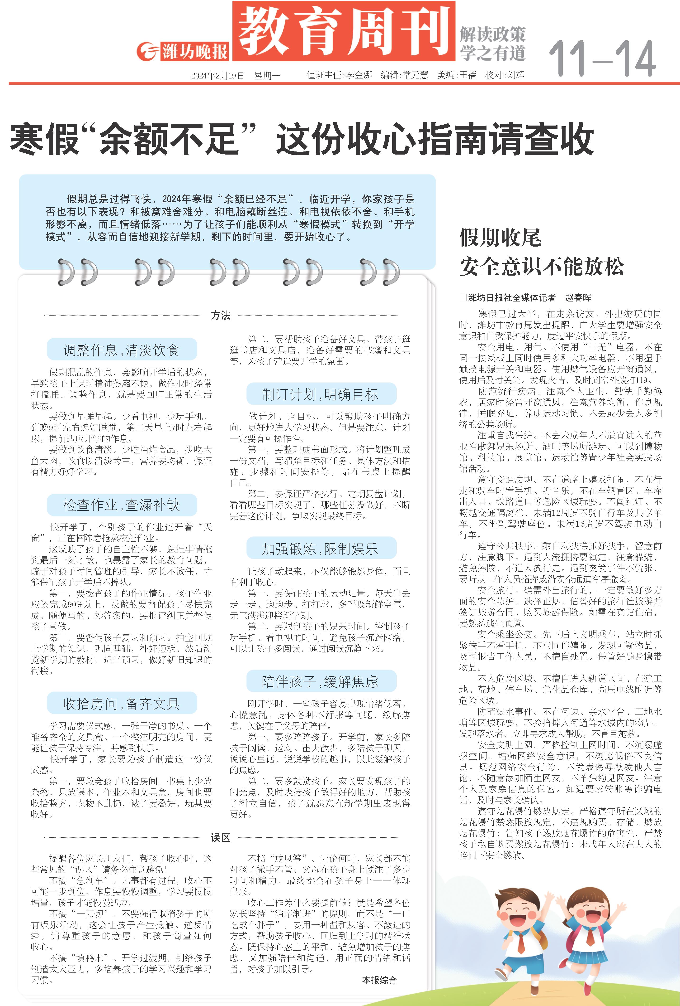 寒假已过大半,在走亲访友、外出游玩的同时,潍坊市教育局发出提醒,广大学生要增强安全意识和自我保护能力,度过平安快乐的假期。