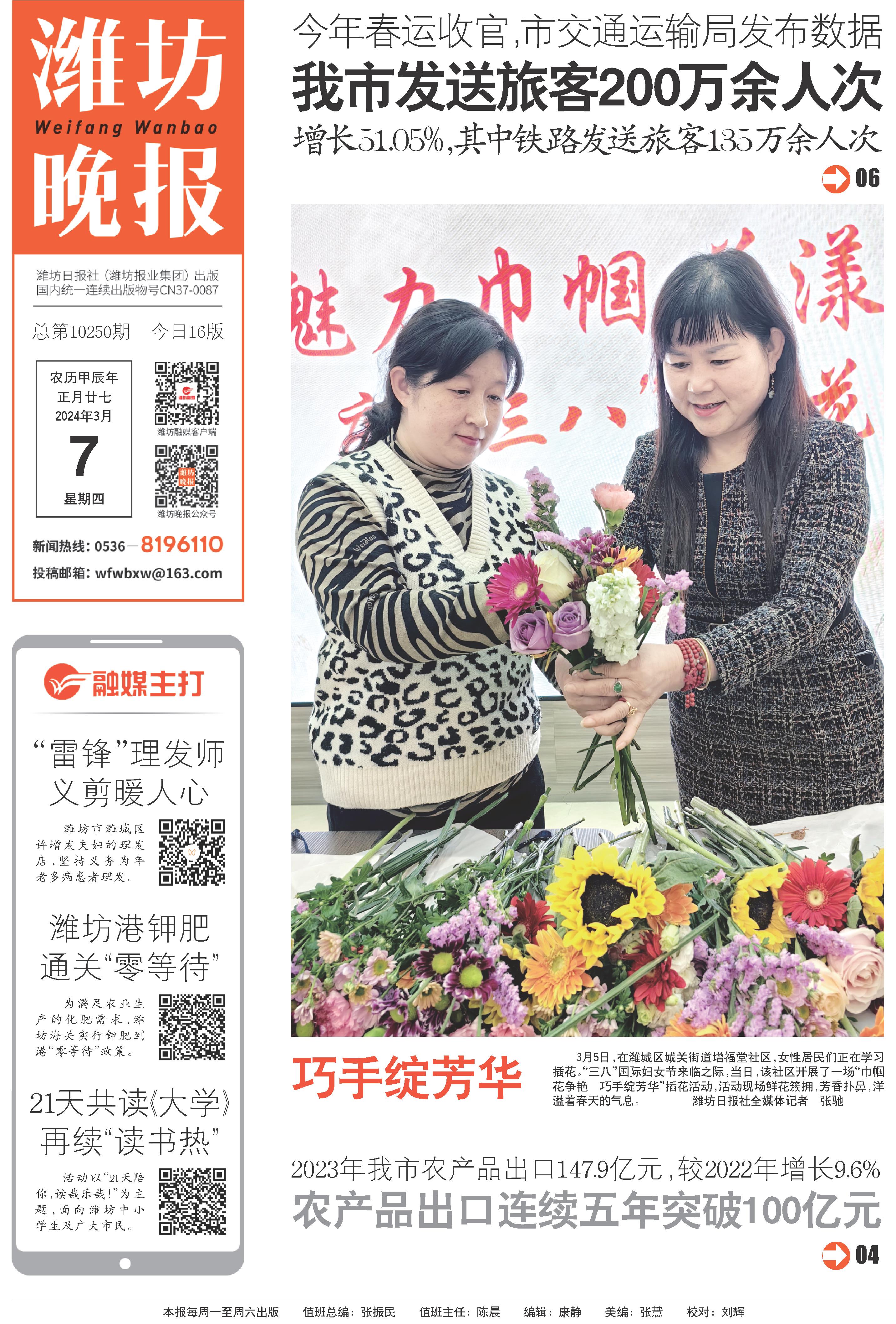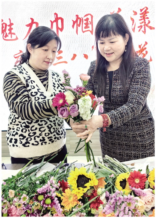 3月5日,在潍城区城关街道增福堂社区,女性居民们正在学习插花。“三八”国际妇女节来临之际,当日,该社区开展了一场“巾帼花争艳 巧手绽芳华”插花活动,活动现场鲜花簇拥,芳香扑鼻,洋溢着春天的气息。 潍坊日报社全媒体记者 张驰