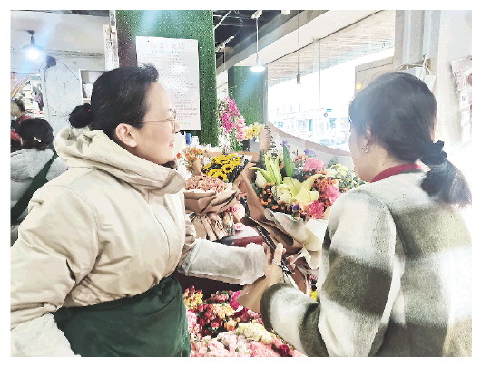 除花店外,花卉市场也迎来销售小高峰。记者在城区虞鑫花卉城看到,市场里十分热闹,物美价廉的鲜花、绿植受到市民青睐,几乎各个摊位前都聚集着顾客。