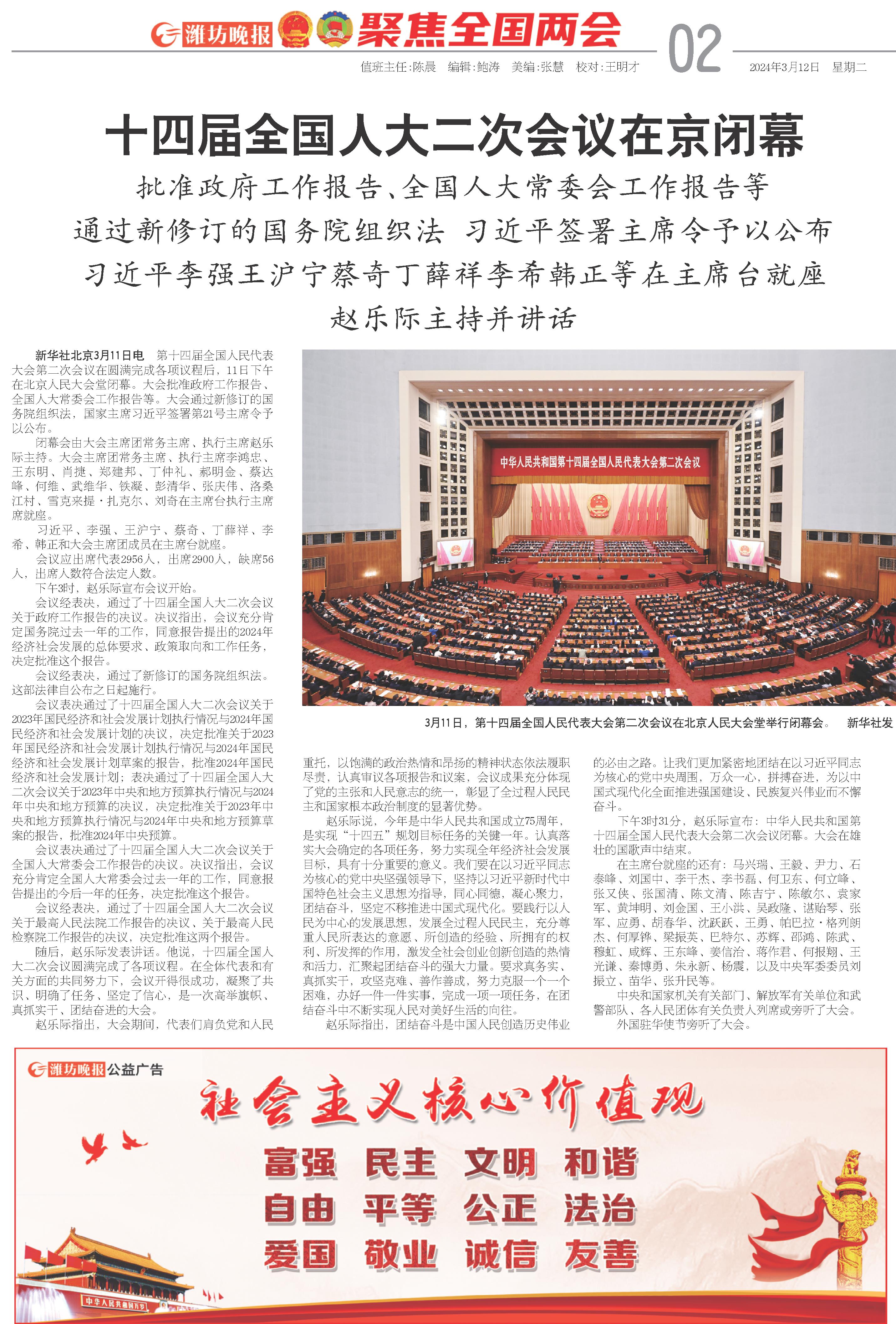 十四届全国人大二次会议在京闭幕
