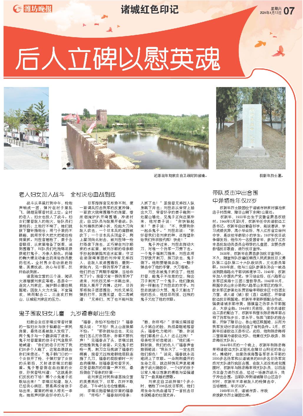 刘家庄自卫战持续7个多小时,牺牲了106名抗日军民,他们用生命与热血谱写了一首抗击日本侵略者的壮丽史诗。