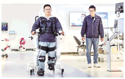 ◥4月17日,位于潍坊高密市的山东泽普医疗科技有限公司的员工在演示智能康复机器人。近年来,高密市坚持以高端化、智能化、绿色化、集群化为发展方向,深入开展优质企业梯次培育工程,助推经济高质量发展。目前,当地已有181家企业入选科技部科技型中小企业库,高新技术企业达到121家。