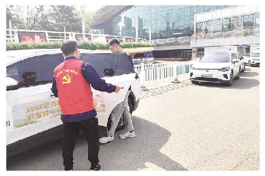 当日上午9时,10辆新能源汽车整齐地停在潍坊火车站出站口停车场,每辆车上都标有“爱心公益服务车”字样,十多位身穿红马甲的志愿者引导外地游客来到车前(上图),免费为他们提供乘车服务。据悉,此次志愿服务一直持续到4月19日。