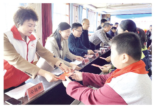 活动中,志愿者、爱心人士为困境学子发放助学金,鼓励他们要自信自强,以乐观向上、积极进取的精神克服困难,努力学好文化知识,成为社会的有用之才。