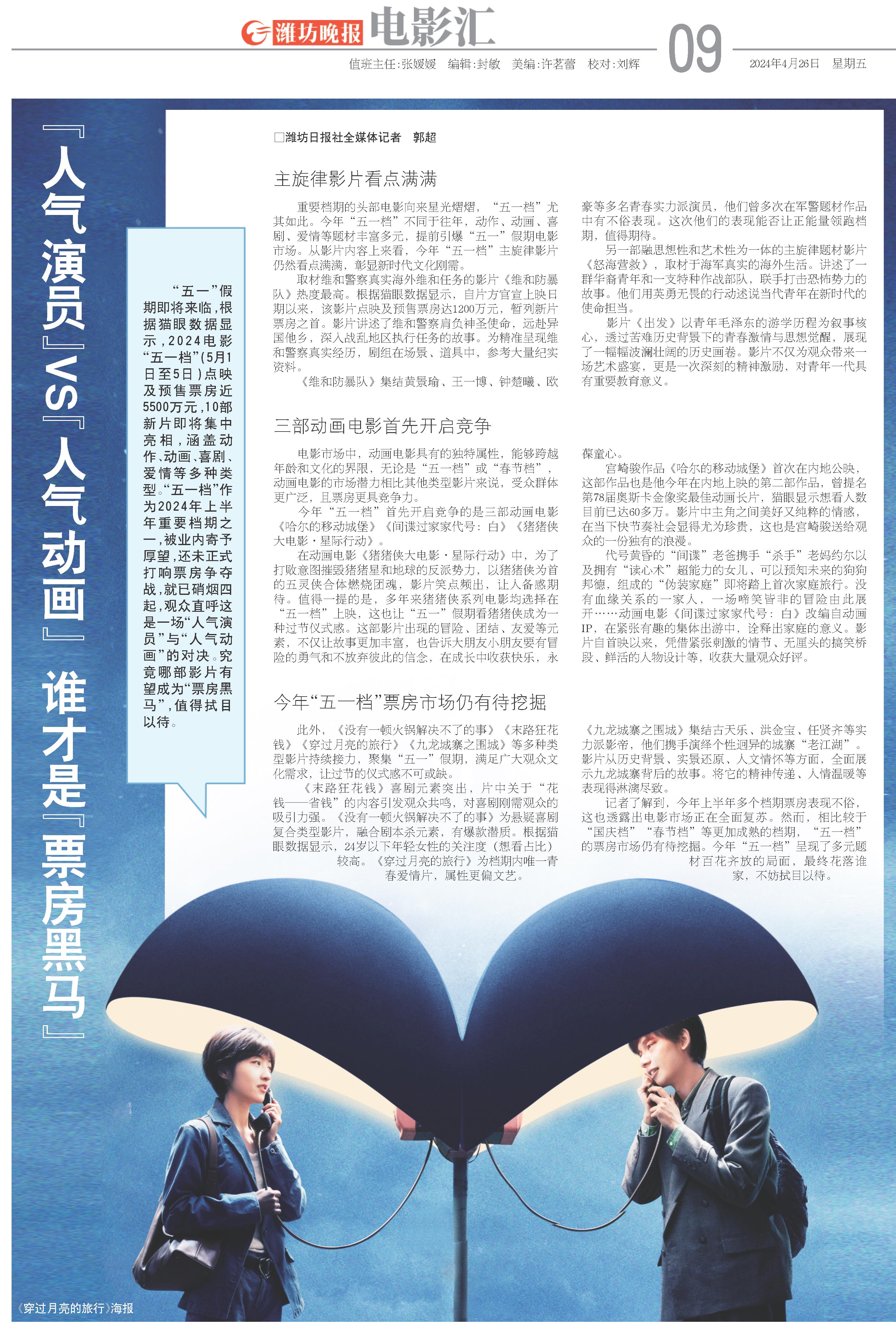 记者了解到,今年上半年多个档期票房表现不俗,这也透露出电影市场正在全面复苏。然而,相比较于“国庆档”“春节档”等更加成熟的档期,“五一档”的票房市场仍有待挖掘。今年“五一档”呈现了多元题材百花齐放的局面,最终花落谁家,不妨拭目以待。