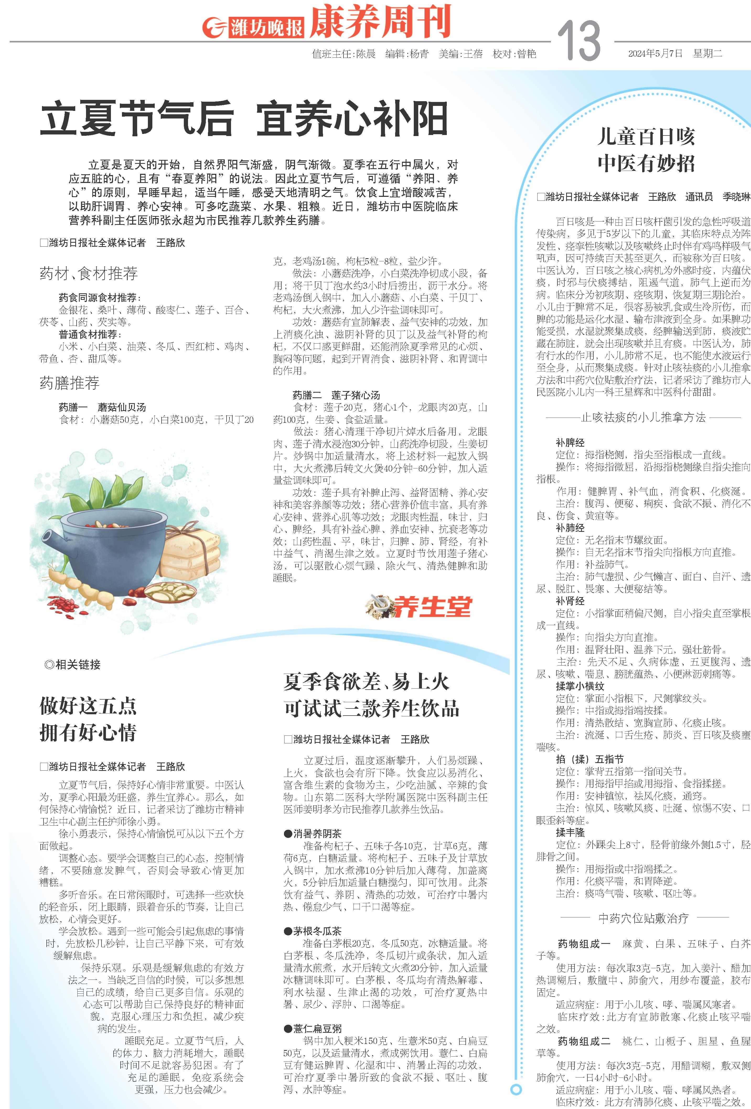 立夏节气后,保持好心情非常重要。中医认为,夏季心阳最为旺盛,养生宜养心。那么,如何保持心情愉悦?近日,记者采访了潍坊市精神卫生中心副主任护师徐小勇。