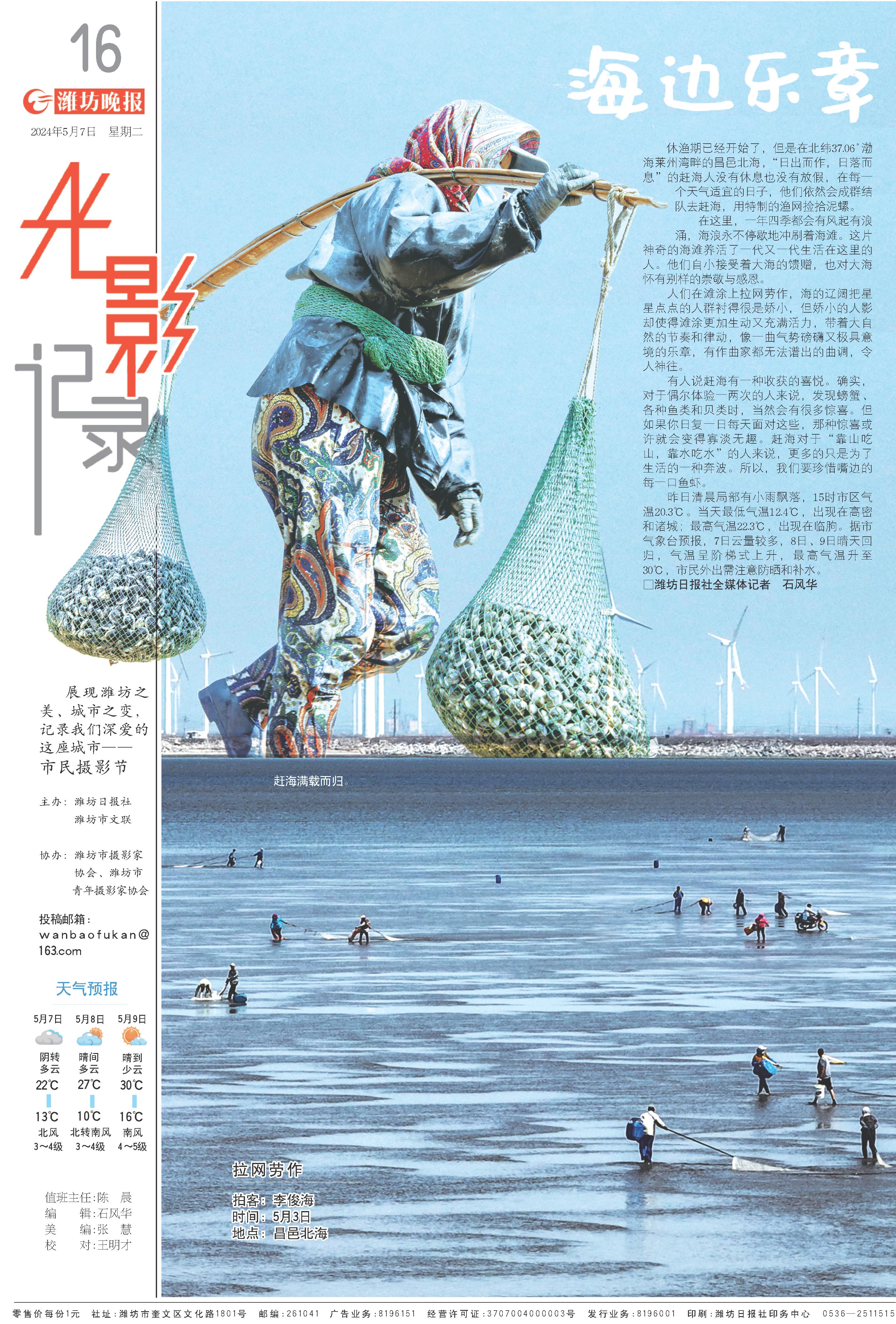 休渔期已经开始了,但是在北纬37.06°渤海莱州湾畔的昌邑北海,“日出而作,日落而息”的赶海人没有休息也没有放假,在每一个天气适宜的日子,他们依然会成群结队去赶海,用特制的渔网捡拾泥螺。