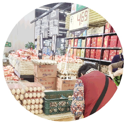 在城区福寿东街与东方路交叉口附近一家超市,鸡蛋售价为4.69元/斤。超市工作人员表示,近几天鸡蛋价格开始回升,顾客可以按斤称,也可以直接拿一板,一板30个鸡蛋,售价17.9元。