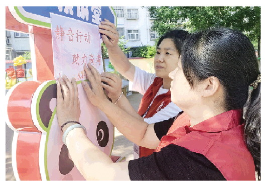 为在高考期间给广大考生创造一个安静、舒适的学习考试环境,6月3日,潍城区城关街道增福堂社区开启“静音行动 助力高考”活动,社区工作人员在小区广场醒目位置张贴、悬挂宣传语和横幅,利用社区微信群向居民发布降低噪声的温馨提示,号召私家车不要在社区内鸣笛,同时对社区内的广场舞健身者进行劝导,努力为考生保驾护航。