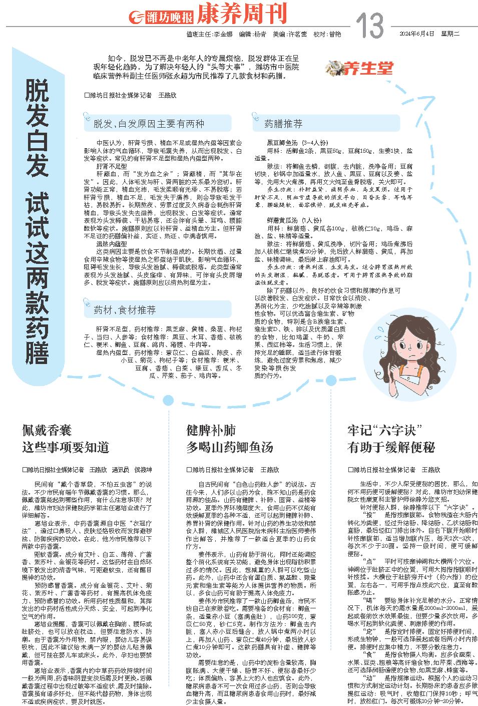 如今,脱发已不再是中老年人的专属烦恼,脱发群体正在呈现年轻化趋势。为了解决年轻人的“头等大事”,潍坊市中医院临床营养科副主任医师张永超为市民推荐了几款食材和药膳。