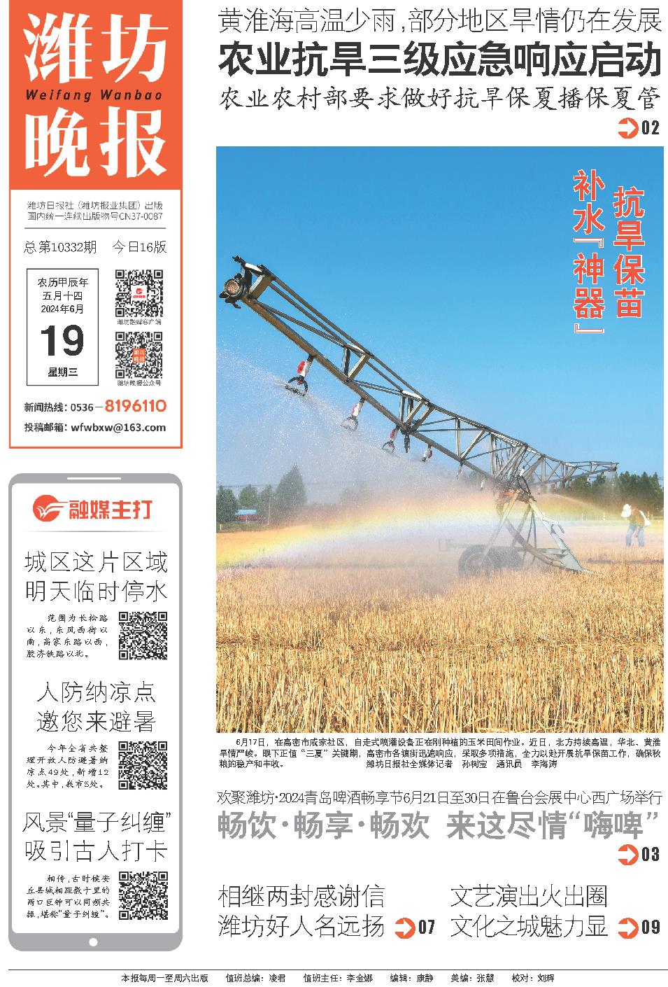 6月17日,在高密市咸家社区,自走式喷灌设备正在刚种植的玉米田间作业。近日,北方持续高温,华北、黄淮旱情严峻。眼下正值“三夏”关键期,高密市各镇街迅速响应,采取多项措施,全力以赴开展抗旱保苗工作,确保秋粮的稳产和丰收。 潍坊日报社全媒体记者 孙树宝 通讯员 李海涛